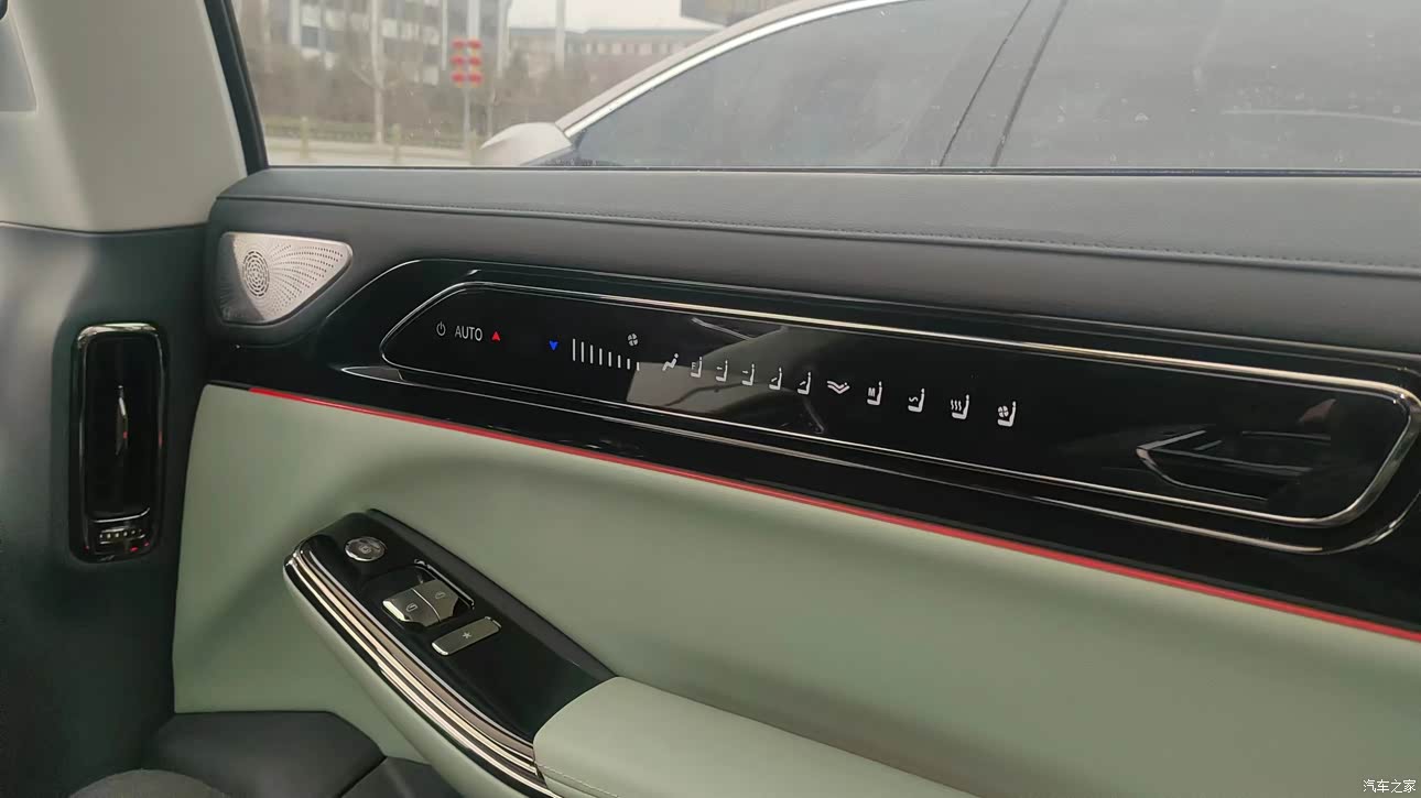 后排门板上的座椅操作配置,按摩、大趟、通风等都在这里