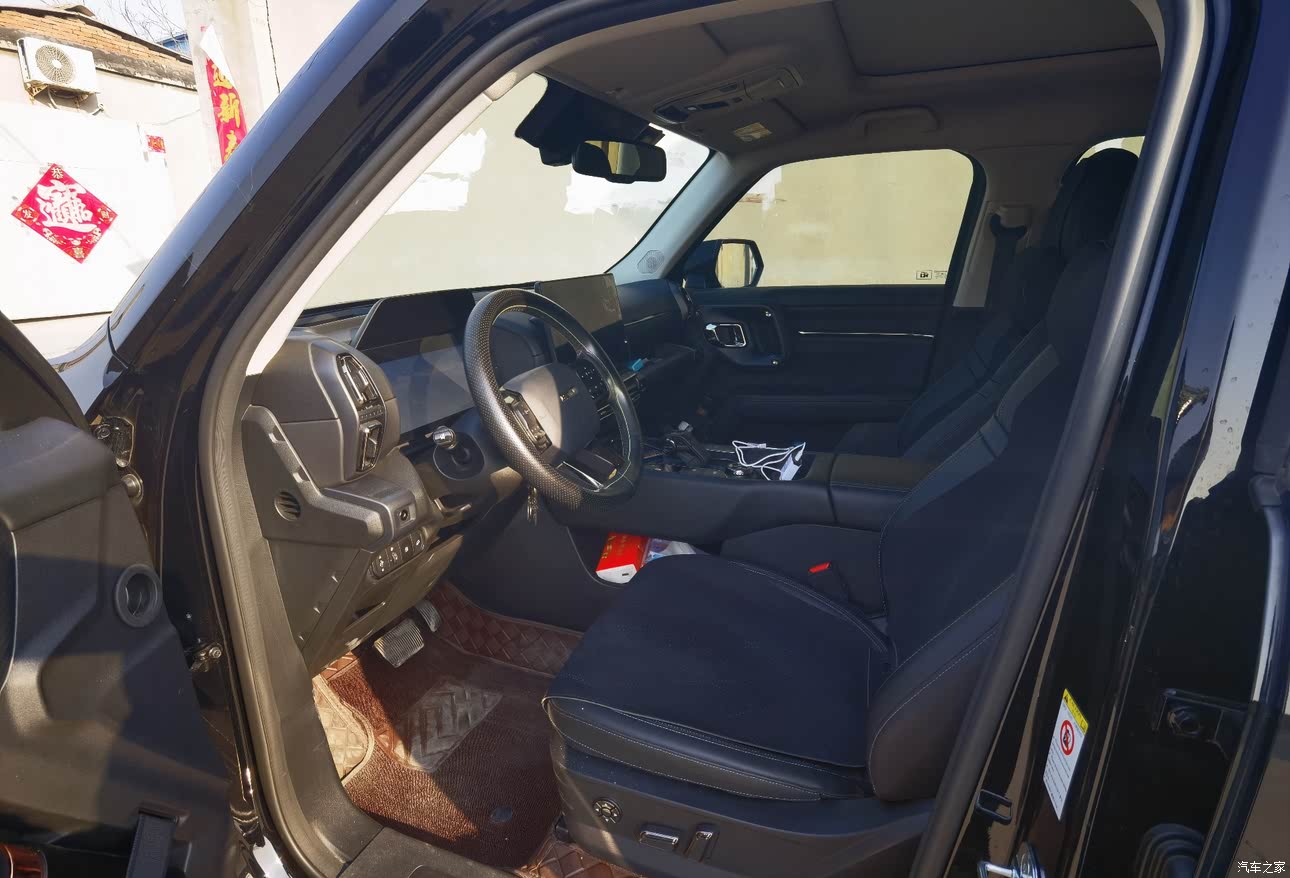 这款车的内饰我非常喜欢,因为这款车内饰很多地方都是采用的皮质面料的一个包裹,摸上去非常舒服,不像我之前的车是塑料的,摸着很难受。而且这款车档把我也非常喜欢,飞机档把设计,非常酷,还有就是超大中控屏,科技感十足,而且这中控屏使用起来也是非常方便。我的这辆二代大狗还有一块超大的全景天窗,户外露营的时候躺在车内就可以看到满天繁星。