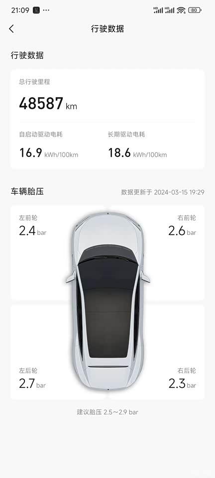 48000公里有三分之二是跑高速的路程,电车受天气影响较大,平均高速定速110开电耗在百公里21度电