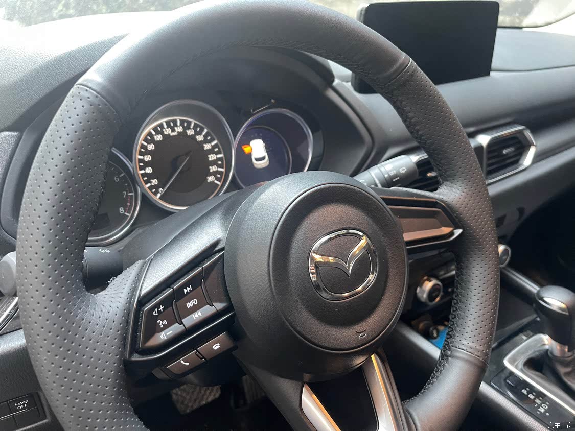 因为是低配自己花钱缝了一个真皮方向盘套,档次和手感立马上来了。Cx-5的方向盘阻尼有点回弹过慢,方向盘力度比其他日系车重一点,比美系车轻一点。