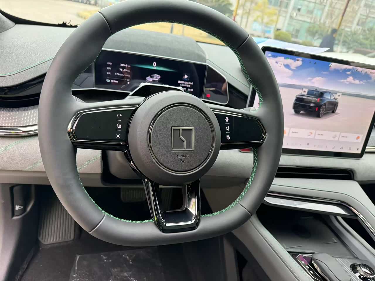 跟很多国产的SUV大屏如出一辙的尺寸,车机可以显示车内温度,车的状态和360度的环影,触控灵敏度还行