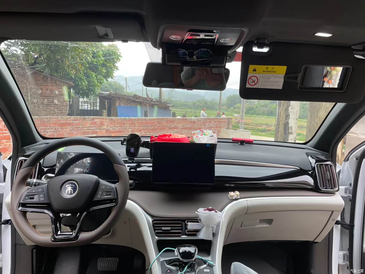 外观好看大气,内饰简洁耐看。 后排空间够大、高度OK、中间地台纯平,座椅比较柔软家人乘坐舒适,不憋屈! 配置也比较高,中等配置就有全景天窗,360全景影像,中控旋转屏幕,后视镜折叠加热等功能齐全,真得非常赞 用车4000公里开起来也很省油,跑长途80-90时速就4个多油,120也就5个油,想想这还是一台SUV!!,比轿车都省,市区范围基本用电就能解决,跑长途提前加油,续航没焦虑。 而且比亚迪刀片电池安全性也让人放心,4S店的数量和车辆保有量都很大没有售后困扰。