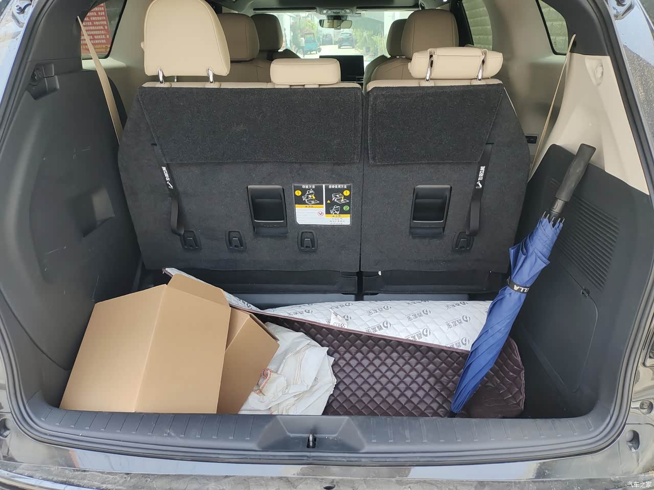 空间很大,第二排中间通道位置也很宽,不影响最后排进出。后备箱的空间也足够,虽然看上去感觉小,但是实际载物能力非常强,因为深度足够,一般的行旅箱放六七个也是没有问题的。我们出行每次都是拉的满满的,没有感觉到有压力。正常情况下,乘坐七人舒适性挺好的。当然,最后一排的舒适性是没有第二排的好,作为商务车,第二排也是给最尊贵的客人乘坐了。