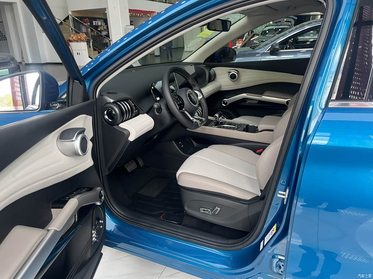 在内饰方面的话,这款车的表现同样很出色。仪表盘和中控都采用立体悬浮式设计,操作所有东西都是通过一张屏幕完成,非常高级、豪华和高科技。整体表现得简洁大方,非常符合年轻人的审美。
