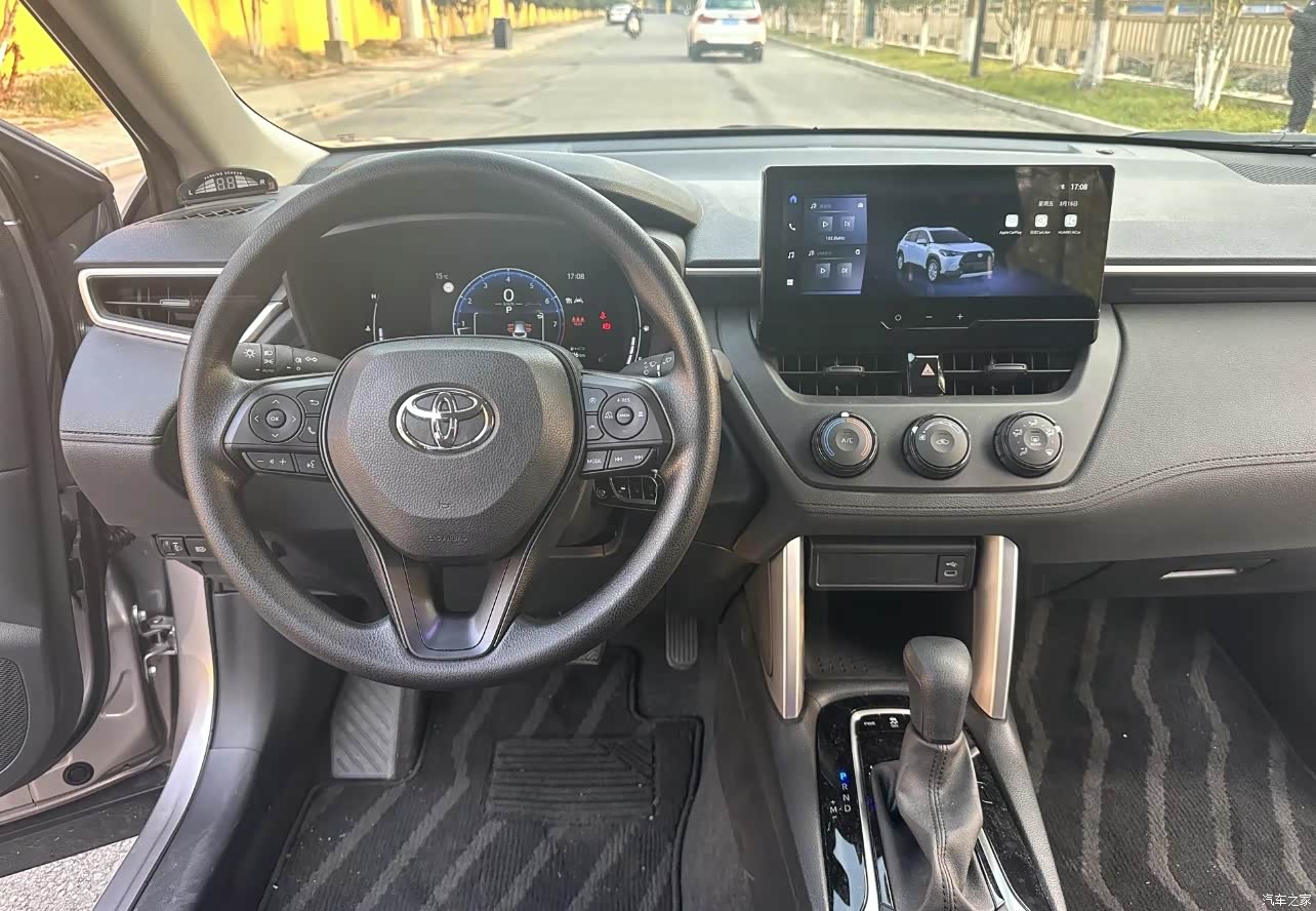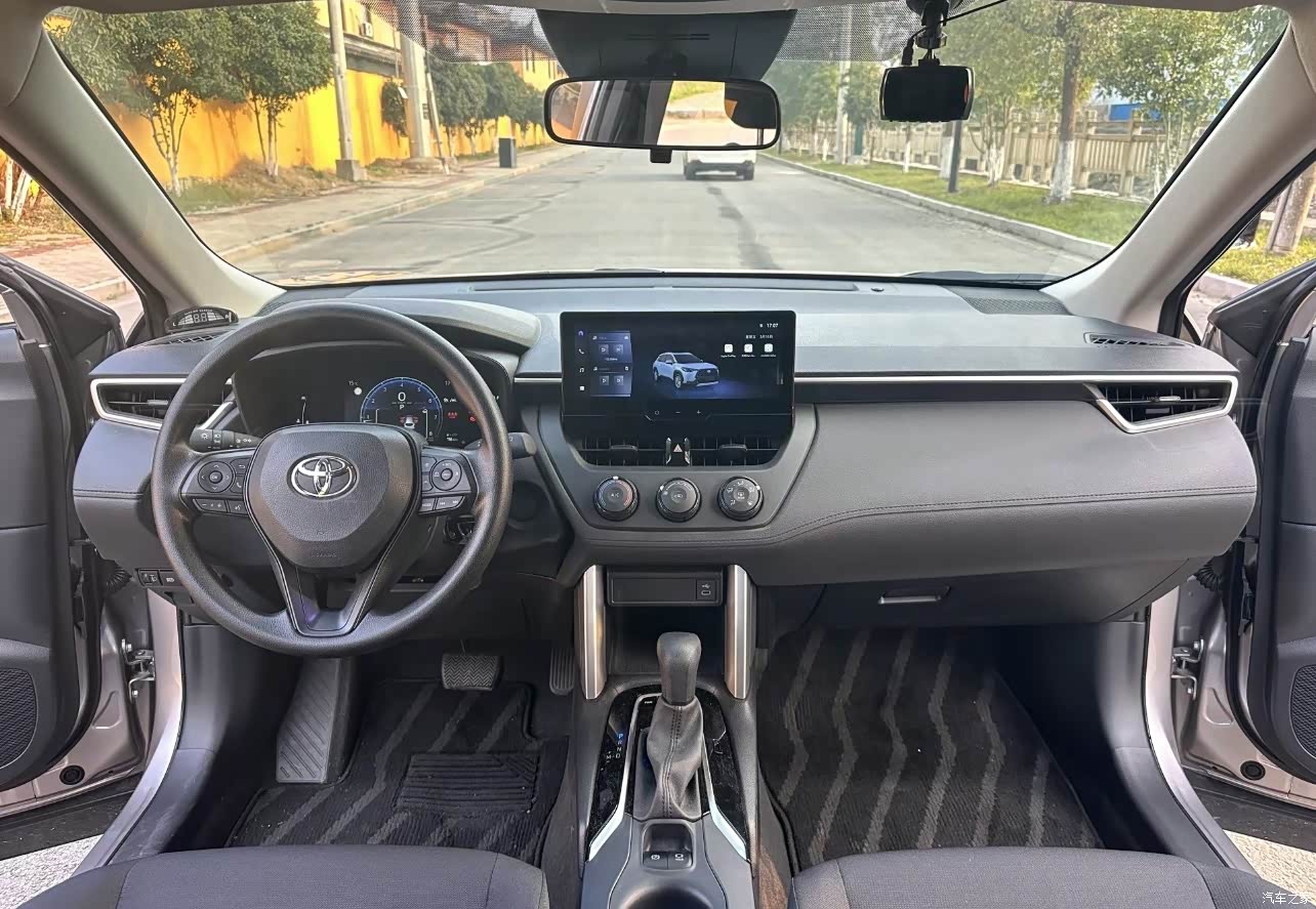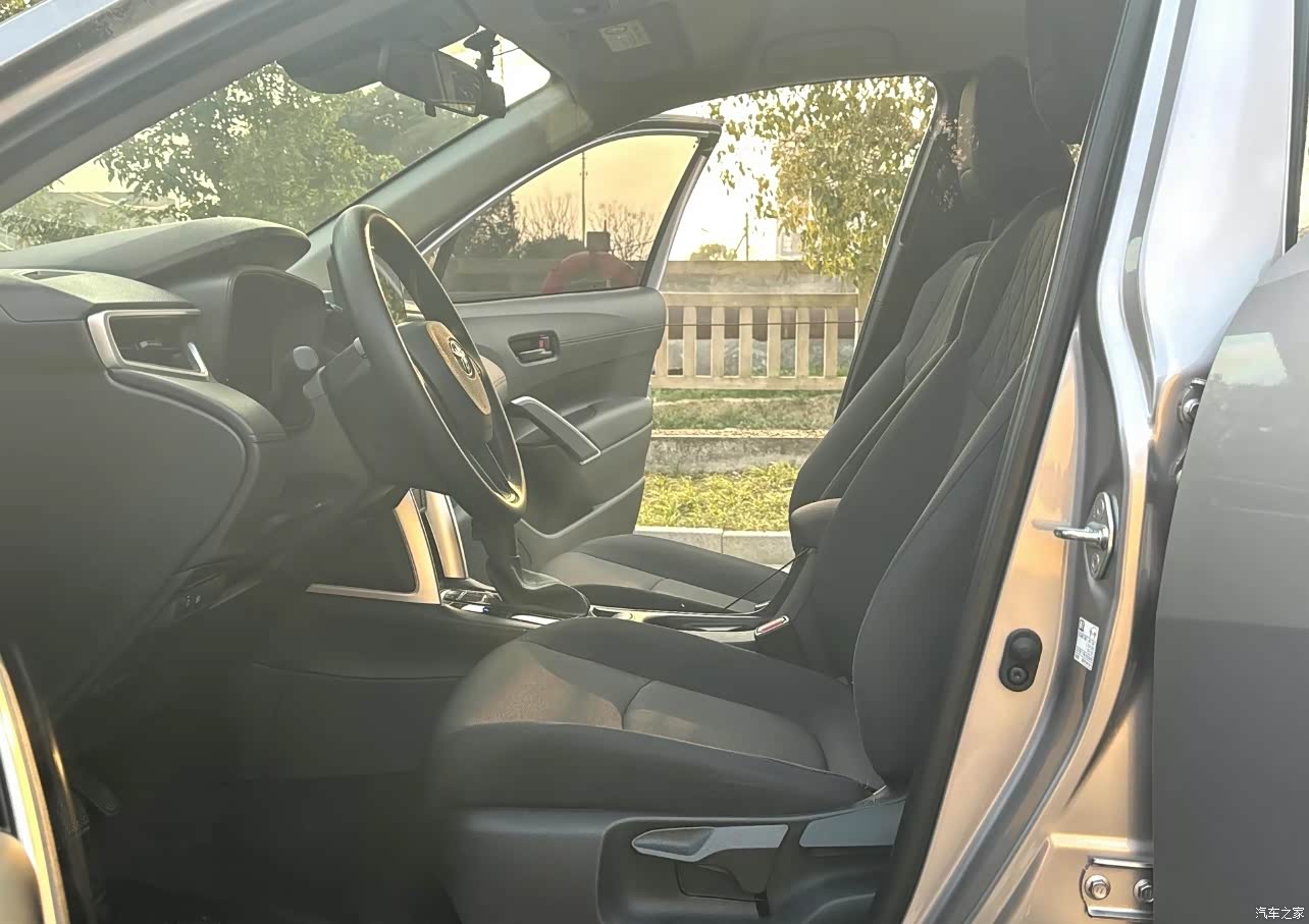 内饰的整体造型比较简约,风格还是一如既往的丰田家族化设计。中控屏幕的尺寸是10.25英寸,看着不算小,感觉挺精致的,用起来的时候很流畅,没有卡顿感,分辨率也很清晰,非常有档次感,最最重要的是它支持苹果的CarPlay,平时出远门的时候连接上CarPlay看导航听音乐啥的都很方便,实用性很强。座椅是织物材质的,填充的比较厚实,感觉很软,坐起来的舒适感还是挺好的,而且织物座椅冬天不会很冷,夏天太阳晒过之后也不会很烫,这算是它的优点。不过缺点就是不太好清理,又一次我的咖啡没弄好撒到了座椅上,清理了好久才弄干净。手动空调用起来很方便,开车的时候不用看也能很流畅的操作风量大小,不过就是看起来有些不太上档次。多功能方向盘倒是挺好用的,可以控制许多功能,便捷性是很不错的。内饰虽然没有啥豪华感但是贵在实用吧,我感觉还可以。