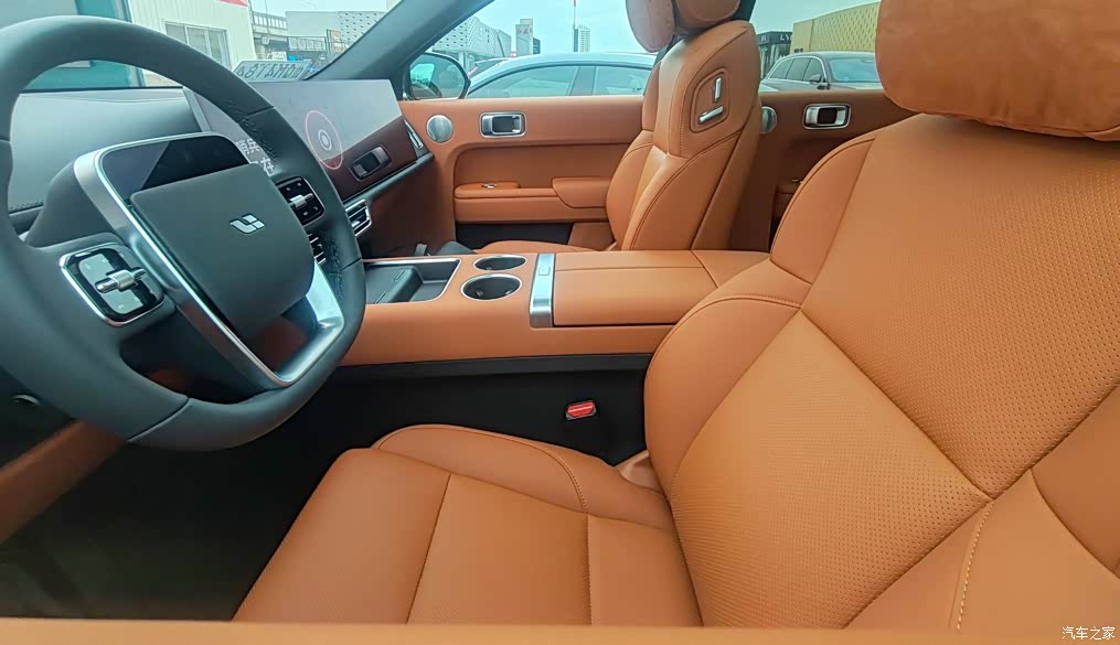 内饰就是主打一个豪华大沙发加大彩电,这个座椅一看就能感受到吧,非常的柔软,不仅是他这个皮质非常亲肤,它的填充物也是比较柔软的那种,但在柔软的同时那里也给提供了非常好的支撑性,所以叫他大沙发不是没有原因的。 车内内饰的设计主打一个简洁,和传统油车很大的一个区别,也就在于它的中控,包括方向盘上的处理都非常的简单,没有那么的复杂,因为很多功能都被集成在了大屏幕上,或者通过语音就可以直接实现。