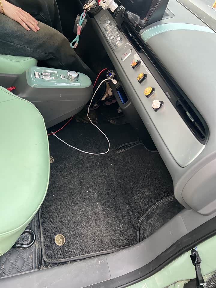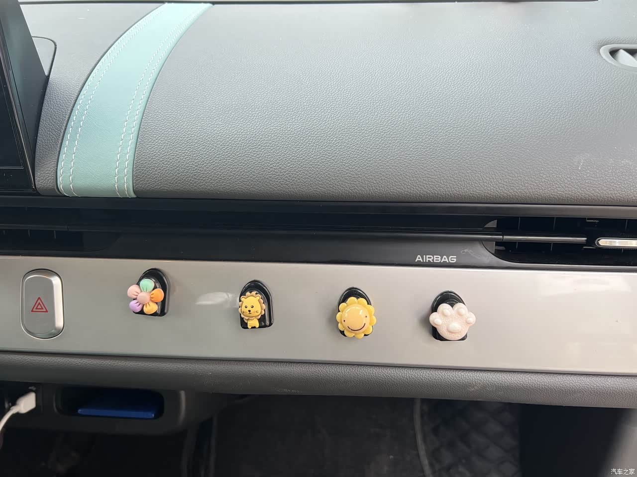 内饰我感觉还不错,而且还有屏幕旋钮的话也非常的灵敏。而唯一圈里是没有挂钩,所以我买了几个挂钩挂上了前面的内饰的话,就是看起来很好看,但是摸起来塑料感稍微有点重,不过我还挺喜欢的它两个屏幕。要比同样的mini之类的嗯好很多,质感上也好好不少。而且配色也还不错,而且旋钮的位置那个颜色还挺亮的。