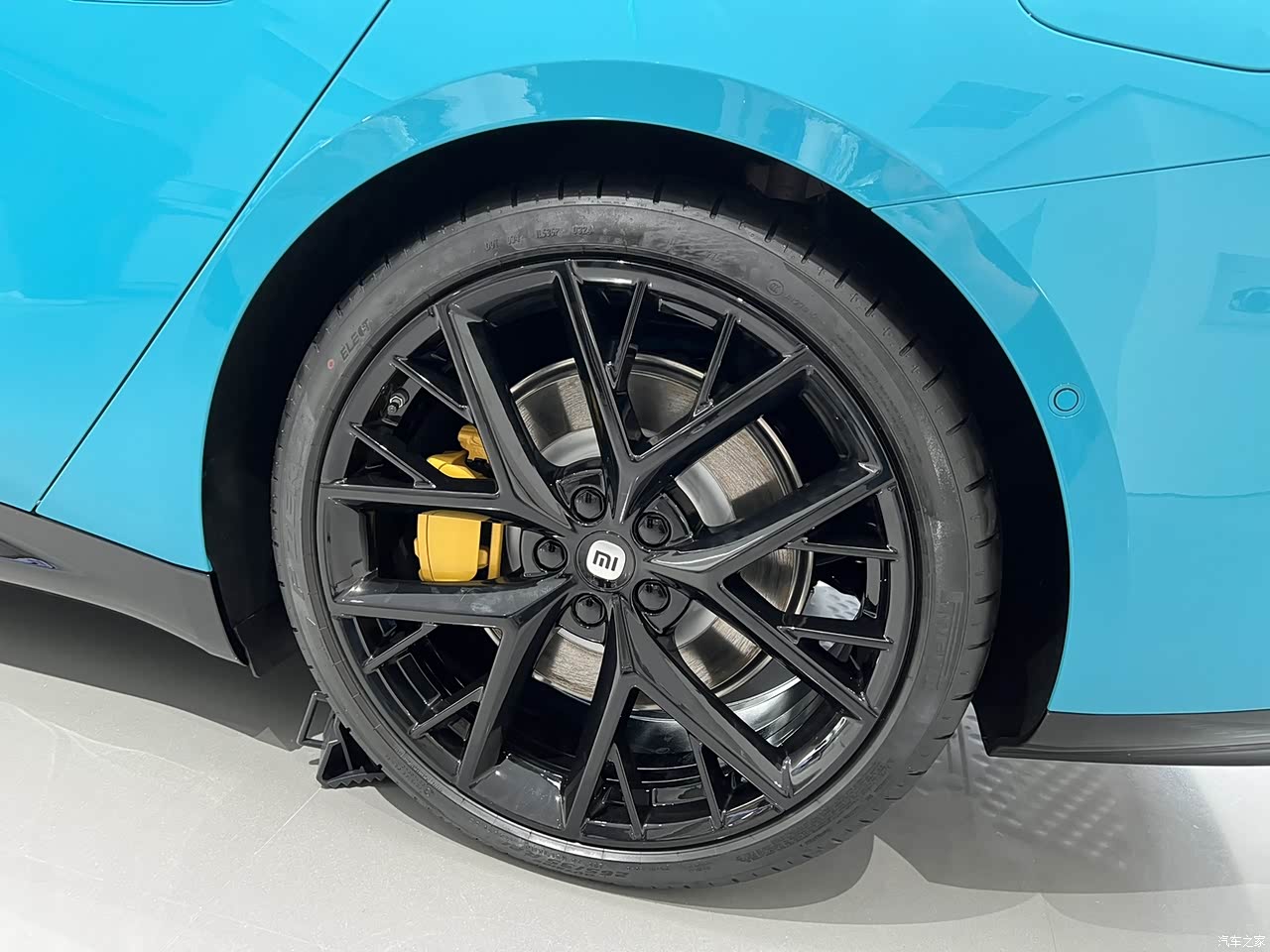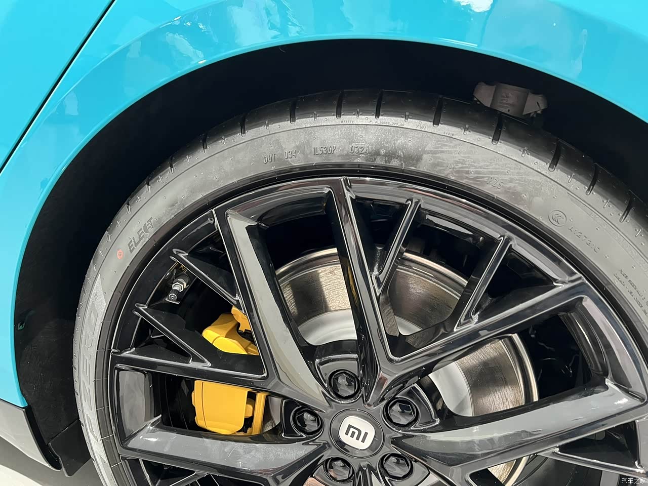 顶配20寸Pzero电车专用轮胎,带了空气悬架,悬架的位置已经调到了最低,看起来就是动感十足,黄色的卡钳,真好看,而且前245后265的轮毂,前倾的姿态,很有轿跑的范儿。销售小姐姐说她们已经开了两个多月,每台车都跑了超过2万公里,驾驶感受非常的好,超过市面上很多运动型轿车。