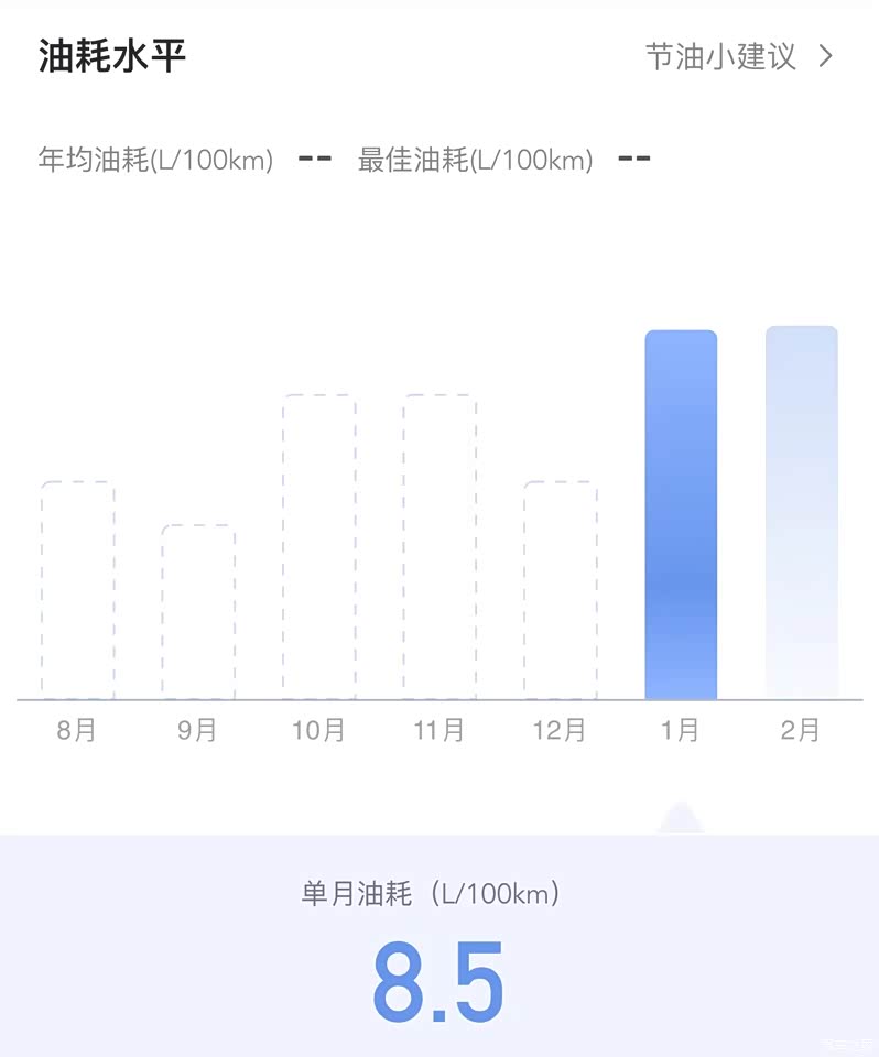 油耗的表现跟日常驾驶的路段有关系,市区内道路驾驶车速提不高,油耗会偏高一些,达到在9~10个左右也算正常,出游自驾上了高速,速度保持在100~120码时,油耗基本上在7~8个左右这个样子,目前综合油耗保持在了8.5~8.6L可接受范围
