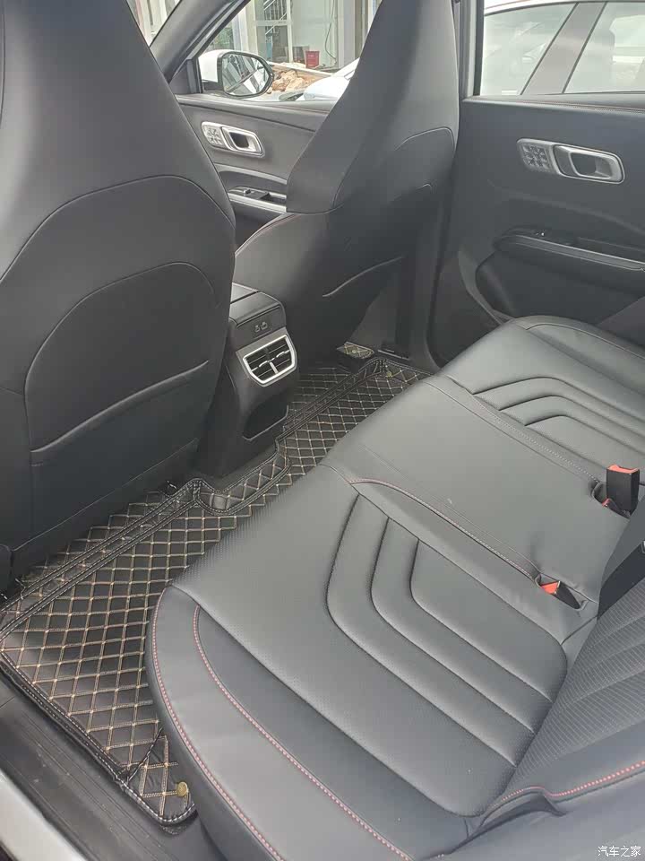 选的黑色内饰,用料都是皮质的,摸着柔软舒适,坐着支撑性刚好,空调效果不错,新车异味有点,总得非常满意。