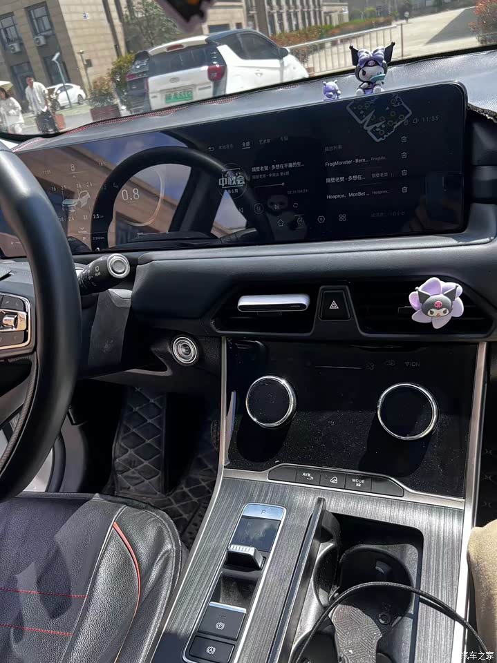 内饰就是双联大屏幕,当时也是看中才选择的,空调屏幕双区控制,就喜欢这个设计,档把就是兰花指样式的。没有2.0的好看,但是用起来挺方便的哈哈,内饰做工还可以,大部分气质和塘塑包裹,异味基本上没有,总体来说还可以