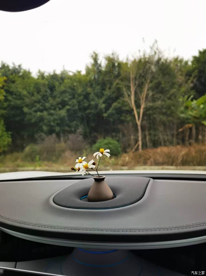 销售顾问讲屏幕后面的那个叫情感涡流,我觉得不够贴切,既然是阿维塔了,名字本身也难记,更像是一个点亮的心灵沟通的塔吧,够奇特够创新,也让人过目不忘,对这个设计很认可,比阿维塔12的那个包围式的屏幕更个性,米白色的皮面内饰不经脏,但舒适温馨感很足,经过我的小小独创装饰,一个茶宠茶杯放上野花,一定是全球唯一一台了,嘎嘎嘎~~~