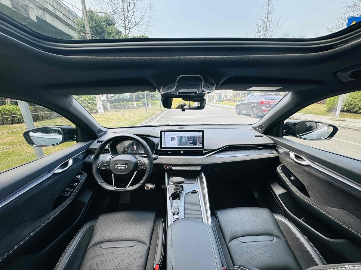 内饰配色很有档次感,而且很耐脏(翻毛皮不好打理是真的),给人感觉是既清新又不失高贵,比很多中型车都做得好。中控造型算是吉利的家族式设计,能摸到的地方几乎都是软材质的包裹,不管是看着还是摸着都挺有档次的。