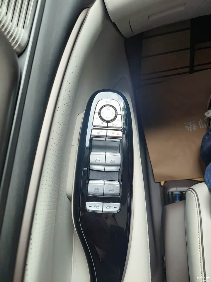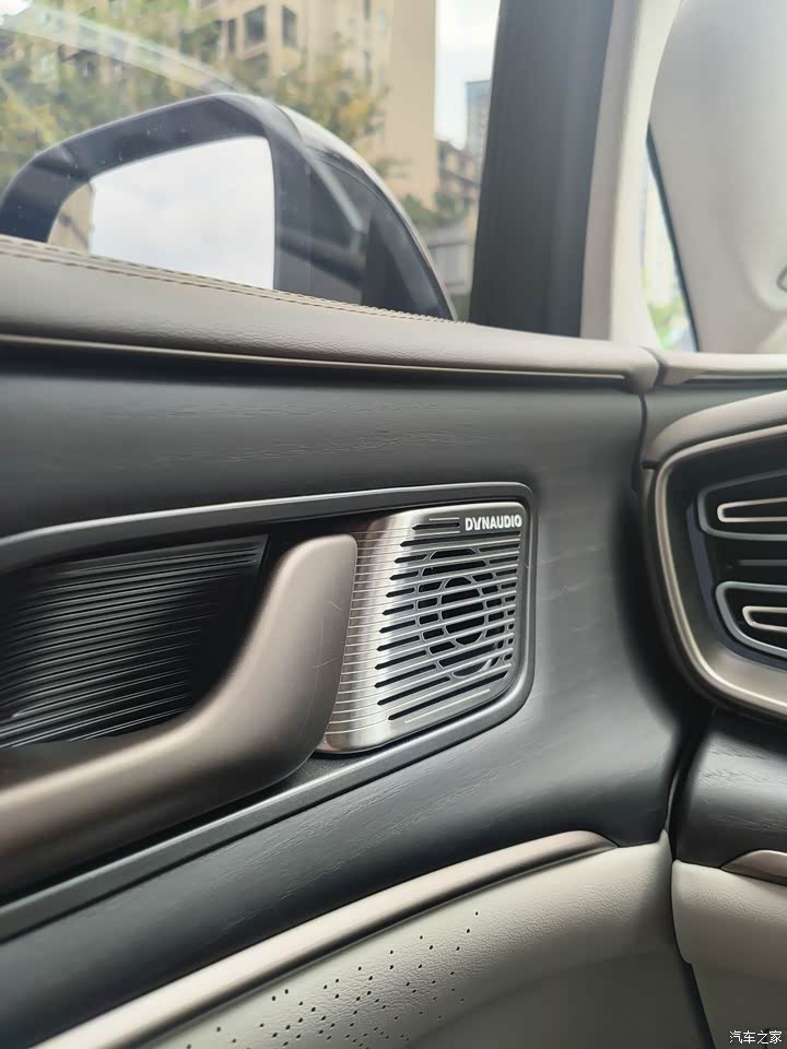 我们选的是黑外白内,挺搭配的耐看。当时为了不让孩子看中排的屏幕,选择了次顶配。这个内饰取车就是这个座椅,顶配是全皮的,我们是人工皮料,坐起来没有全皮的包裹感强,和舒适。为了孩子的视力健康,都能接受。前排扶手按键边框是这样烤漆的,容易有指纹,必须擦勤点,不然看起脏脏的。丹拿音响银色金属外观陪配上黑色木纹,接触面都是皮料包裹起来的。