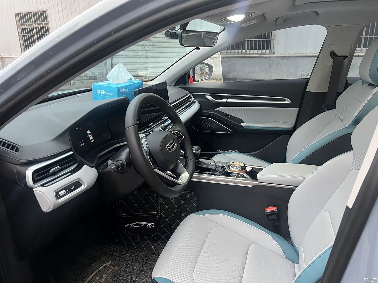 内饰:内饰挺满意 ,内饰是那种青灰色和白色双拼的颜色,如果没有记得的话,它的 名字 应该叫 青云直上 ,哈哈哈哈哈哈,很洋气的名字。 总之内饰设计还是比较高级的,蓝白设计清新感十足,这个才是最适合我的点。