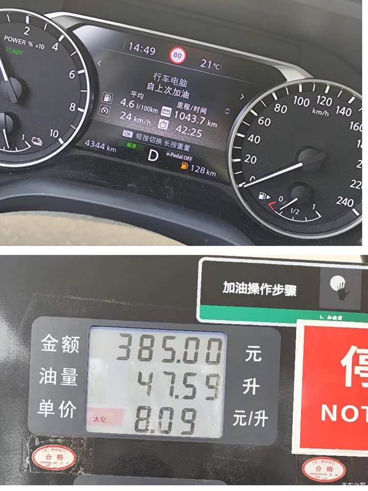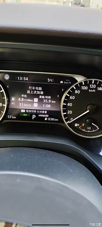 看网上测评和车主自测,基本上都是6789,提车前个人预期6个上下。12月底提车加满油到家表显4.8,当天气温-5℃,走阜石上三环,手机app平均油耗7.8。从提车至今4350公里,app油耗一直下降,现值为5.0,个人估值应为4.7,最近三箱油,油耗4.8 4.6 4.6,都是行驶1000公里左右去加油,非全市区有部分高速。4000公里首保+召回升级,同样路程回家,单次表显油耗3.6,升级后明显感觉同路况同距离油耗降低。年初路遇同款车友6月份提车手机app平均油耗5.2。 只在元旦跑过一次高速,晚上回京气温-10℃全程不扣分情况下表显7.5,白天出京-5℃全程100左右,表显6.4,这个高速油耗不太准,主要原因是刚提车,对车的驾驶方法不太了解,1000公里以后才弄明白了怎么开。 日产奇骏e-power行驶里程越跑越多。加满一箱油表显800多公里,行驶里程越开越多,按表显和我对车的了解,55升的油箱可以行驶1200公里以上。剩余200公里以下行驶公里数出入最大,表显176公里,实际开了36公里+10公里后表显156公里,公里数越跑越多,无法测出一箱油跑多少公里。剩余135公里红灯亮起,不敢再测公里数只能去加油站了。但是奇骏e-power的表显油耗精准无误。
