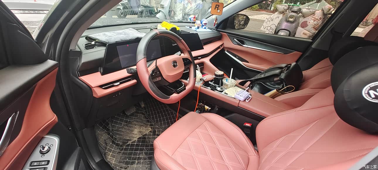内饰酒红颜色蛮大气的,我朋友说这个内饰颜色很大气,就跟保时捷那种类似一样哈哈,当初我确实想要一个白色的内饰,但是要等,所以说就最后选择了酒红内饰因为普遍都是,主打颜色