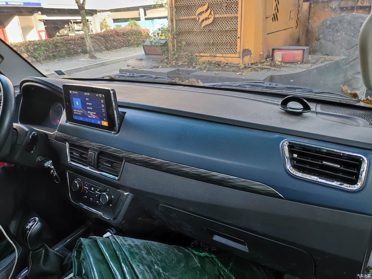 内饰虽然说谈不上豪华,但在同类型的货车当中还是看起来要高档一些。不管是中控屏还是充空调出风口这些的布局都比较合理,唯一不足的话,就是车门上的放手托的位置不是软的。