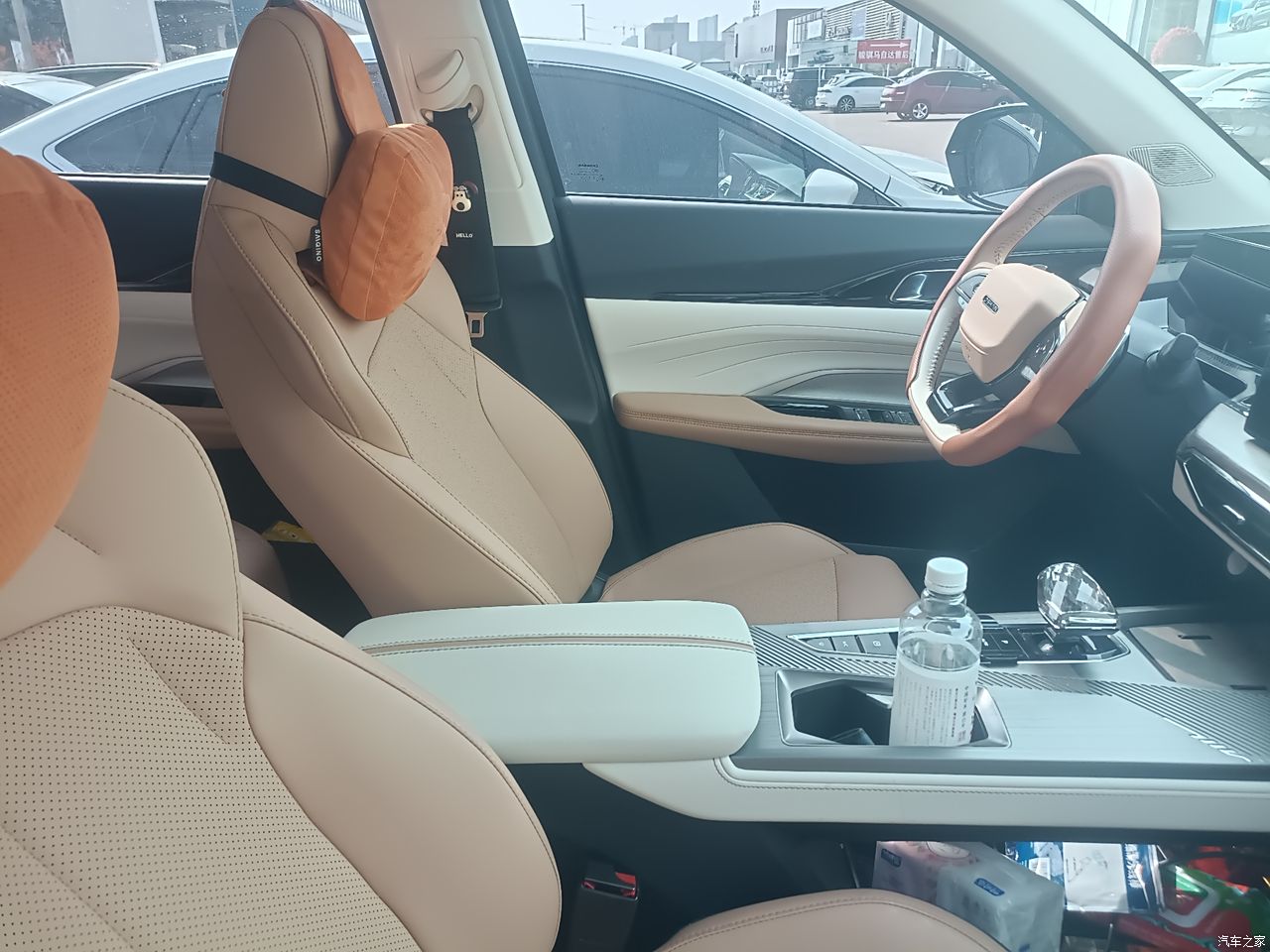 内饰很不错,看上去是比较简洁大方的那种,而且我觉得挺简约的,就会有一些科技感。 内饰中控部分还是做了一些线条的处理的,包括异形的屏幕,还有中控台的一些花纹设计,整体看上去都挺有质感的。 座椅也挺不错的,坐着挺舒服的,坐在里面两三个小时,我觉得都不会觉得累,如果说是长途要跑很久的话,那不可避免还得有些疲惫感。