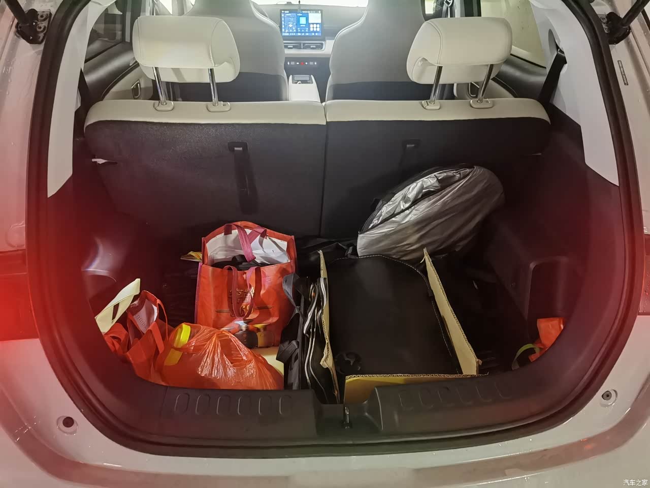 空间非常满意,很大很大,同级别的纯电车估计就它后备箱最大了,外观大小跟丰田致炫差不多,但比它更高,疑问就是这么大为什么不做五座呢?
