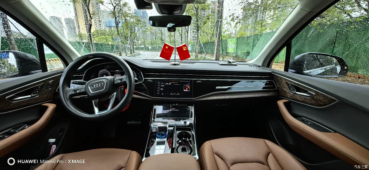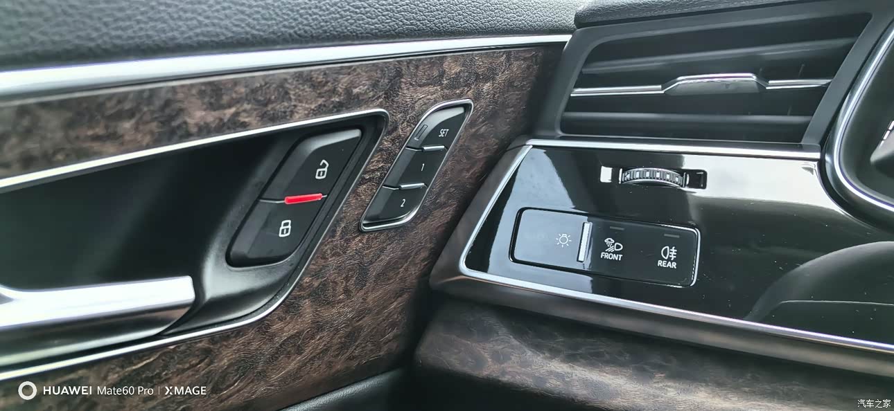 内饰用料还是十分考究的,纯进口车辆,斯洛伐克工厂生产,座椅都是真皮,手感细腻且舒适度较高。与此同时中控台部分采用了大面积的柔性材质,缝线也好触摸感受也好,你能体会到其中的细节。此外,中控台还配备了10.1+12.3英寸全液晶仪表和10.1+8.6英寸中控屏,双屏联动,科技范十足。四个门以及手套箱和扶手箱一些细节的地方,全部采用了实木胡桃木来装饰点缀,不失商务属性豪华感。总体来说,Q7的内饰材料选择和工艺都非常出色,高端大气都是在的啦。