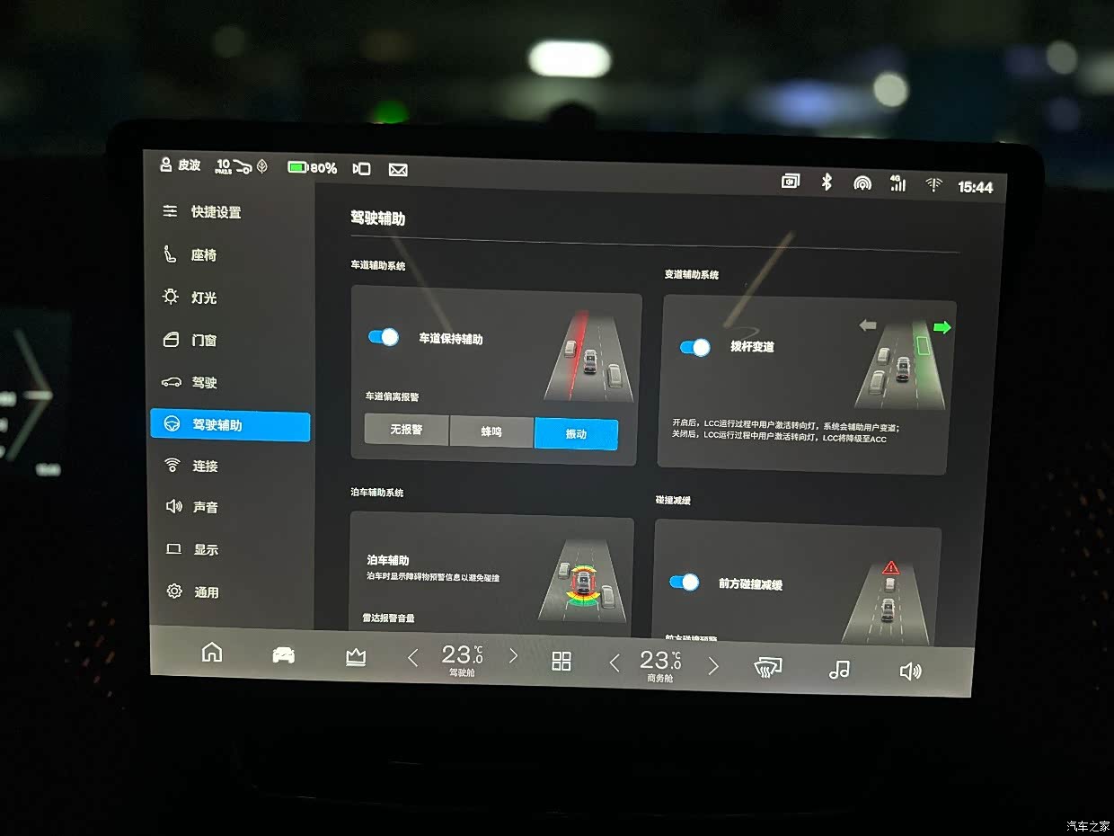 8155芯片,高德地图,爱趣听音乐,语音功能都很实用,车机功能完全够用。还有二排吸顶屏,多场景运用,很不错。车机就是车机,为什么要做成智能平板?车机是要服务车辆安全使用的。对国内的很多需求不解。智能驾驶辅助目前还是标准的L2级别,车道保持比较稳定,高阶辅助要等后期ota,不过也无所谓,够用就好,我不喜欢当小白鼠,安全第一。还是要自己注意力集中。
