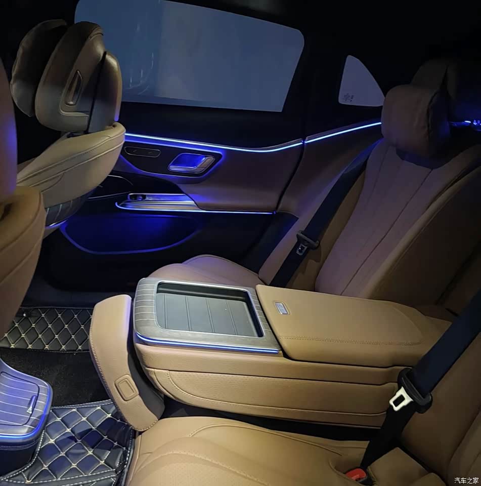 用一个词概括就是高级。内饰饰板花纹纹理很精致,看着很有艺术气息,不管是敲起来的声音还是摸起来的手感,都是碾压市面上其他车辆的存在。环绕式的空调出风口贯穿整个前面,和游艇的设计一样,调节的金属开关声音很清脆,质感很到位。门板上的金属盖设计的也很漂亮,外壳工艺看着很精致,让内饰看着更加上档次了。座椅调节控制区在门上,这一开创性的设计很独特,而且按压起来的震动反馈也很足。车内能摸到的地方基本上都用了软性材质去包裹,很柔软细腻,座椅也很舒服,包裹性很好很柔软。氛围灯的颜色种类也很多,而且不管是面积还是亮度都要比市面上其他车型都更优秀,光线很柔,不会影响夜晚驾驶。钢琴烤漆的方向盘也很亮,真皮方向盘握起来很舒服,而且造型也很好看。后排座椅头枕很软,长途驾驶不会累,坐垫也足够软,可以有很好的承托性。
