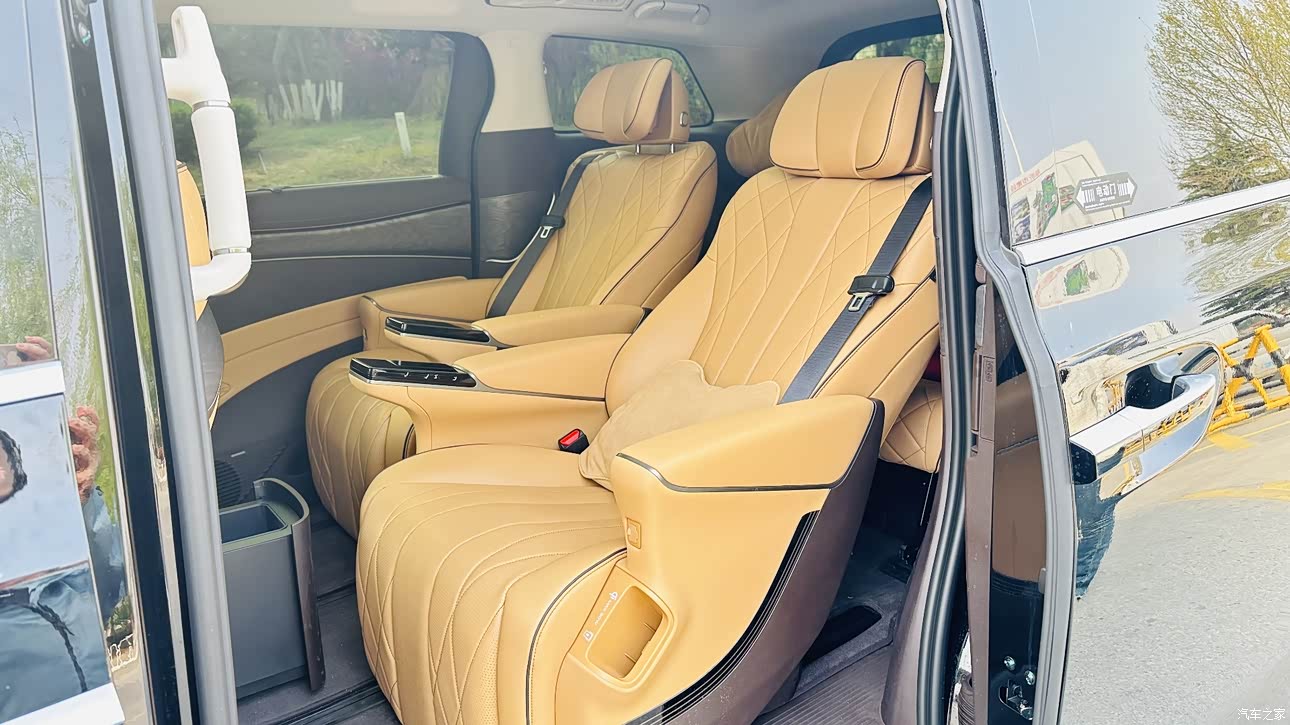 这台车子的内部空间还是挺大的,坐在里边不会有拥挤的感觉。前排座椅而且第二排的零重力打开,几乎可以算是平躺了,让人可以在车内睡个觉还是很舒服的。而且车内的垂直空间也很不错,坐在里边也不会有压迫感。