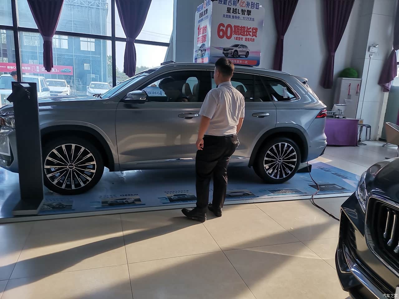今天休班,带着老婆孩子来看车。结婚的时候因为囊中羞涩没有买车,一将就是两年,孩子现在已经九个月了,出门没辆车着实不方便。以前没孩子的时候,我和老婆两个人不管冬夏始终就是电动车出行,但是现在有了孩子不能再将就,所以我决定补偿一下老婆孩子,一定要买辆车。听朋友说吉利新上了一款星越L智擎,油混的SUV超省油,于是就来到家附近的吉利4S店试驾。试驾过之后,对这款车真是的念念不忘,第一次开车竟然这么平稳,有试驾专员跟着指导讲解,心里很踏实,为试驾专员点个赞,很有耐心。