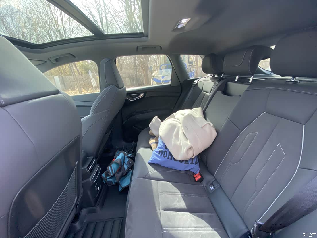 Q4定位是紧凑型SUV相比奥迪传统SUV做到后排地台纯平,后排坐三个人的体验会相对好很多,当时对比了BBA差不多同级的车,Q4的空间对比不算小,但和奥迪Q3的空间差距不大,三口之家用是完全没问题的。 但是和其他新势力比确实也差点意思,这个价位的新势力品牌基本都能做到二排翘腿,虽然做到的按键换挡,但比较流行的中控台下方储物台也没有,这点确实差了一些。