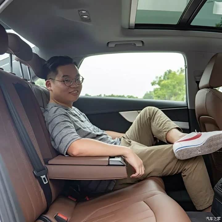 奥迪A4L的两个前排座椅软硬适中,乘坐感受舒适,恰到好处的包裹感和承托性凸显出了奥迪在人机工程学上的深厚积累,另外座椅长度可以调节,也保证了对于各种不同身材用户的适应性,不论高矮胖瘦都能找到自己舒适的位置。同时Alcantara的材质也给座椅带来了出色的摩擦力,能够在高速行驶的情况下提供更高的抓力。得益于2908mm的轴距,后排乘坐空间是很足的,在给前排留下充足空间的同时,后排乘客膝盖到前座椅还能有两拳以上的距离。不过后排座椅的角度稍显垂直,加上比较靠前的头枕,长时间乘坐的体验不是太好。