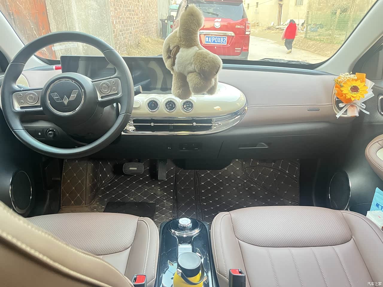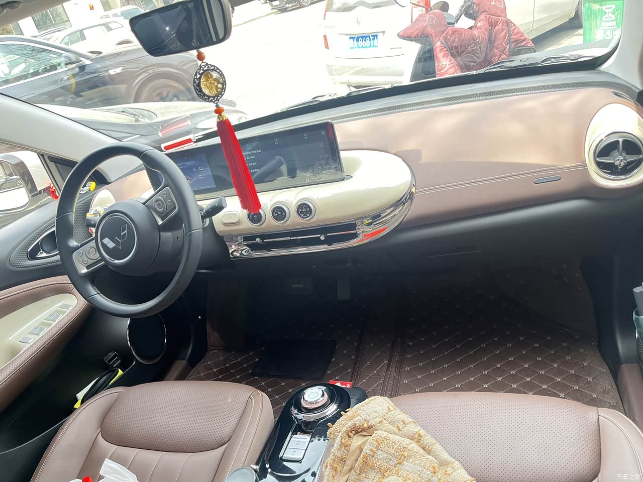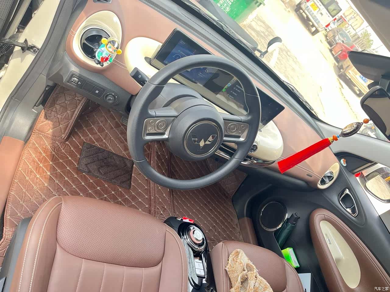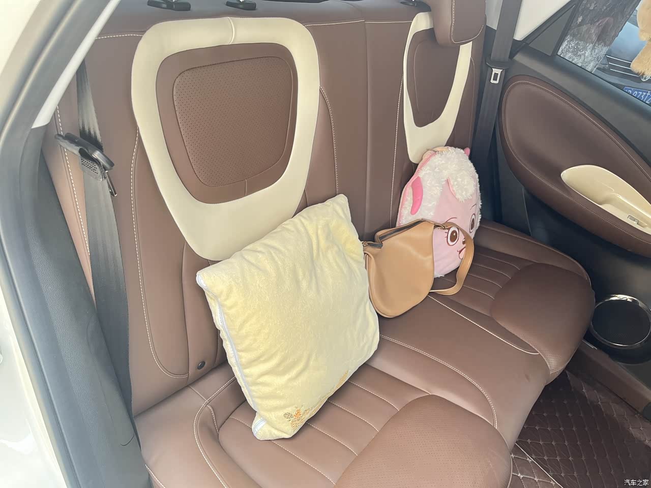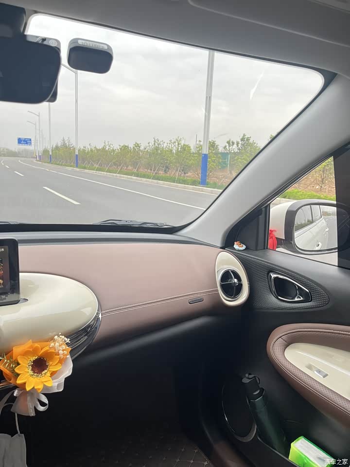 车内饰颜色采用咖色➕奶白,很温柔 造型选择了圆润复古风,深受女生喜爱;其中最喜欢的就是中控台设计, 在平时出门逛街或者上班,随便找个小车位停车,副驾驶也可以自由出入,直呼:太香啦