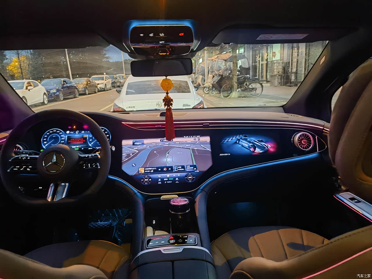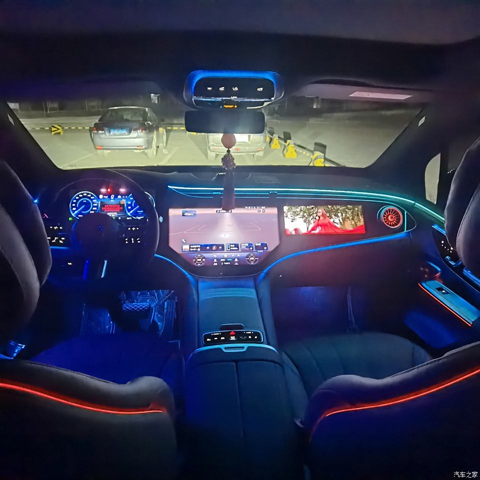 奔驰的内饰就不用多说,豪华感满🈵,用料也很到位。尤其是这个多花很多钱的大连屏,豪华感拉满,氛围灯也很豪华。白色配氛围灯更好看、更显豪华,但是自己确实不敢买,太不经脏了,就选的棕色。