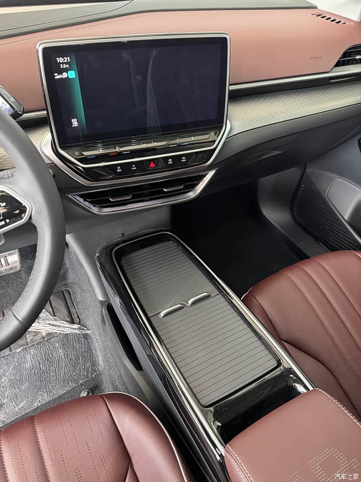 内饰仪表盘是悬浮式的设计但是屏幕尺寸小了一些,驾车时查看不够直观,12英寸的中控屏幕显示效果不错,也可以下载第三方的应用在休息时也可以用来放松一些,前台部分是钢琴烤漆的材料看起来比较有质感,整体颜色为枣红色我个人比较喜欢看起来偏商务。