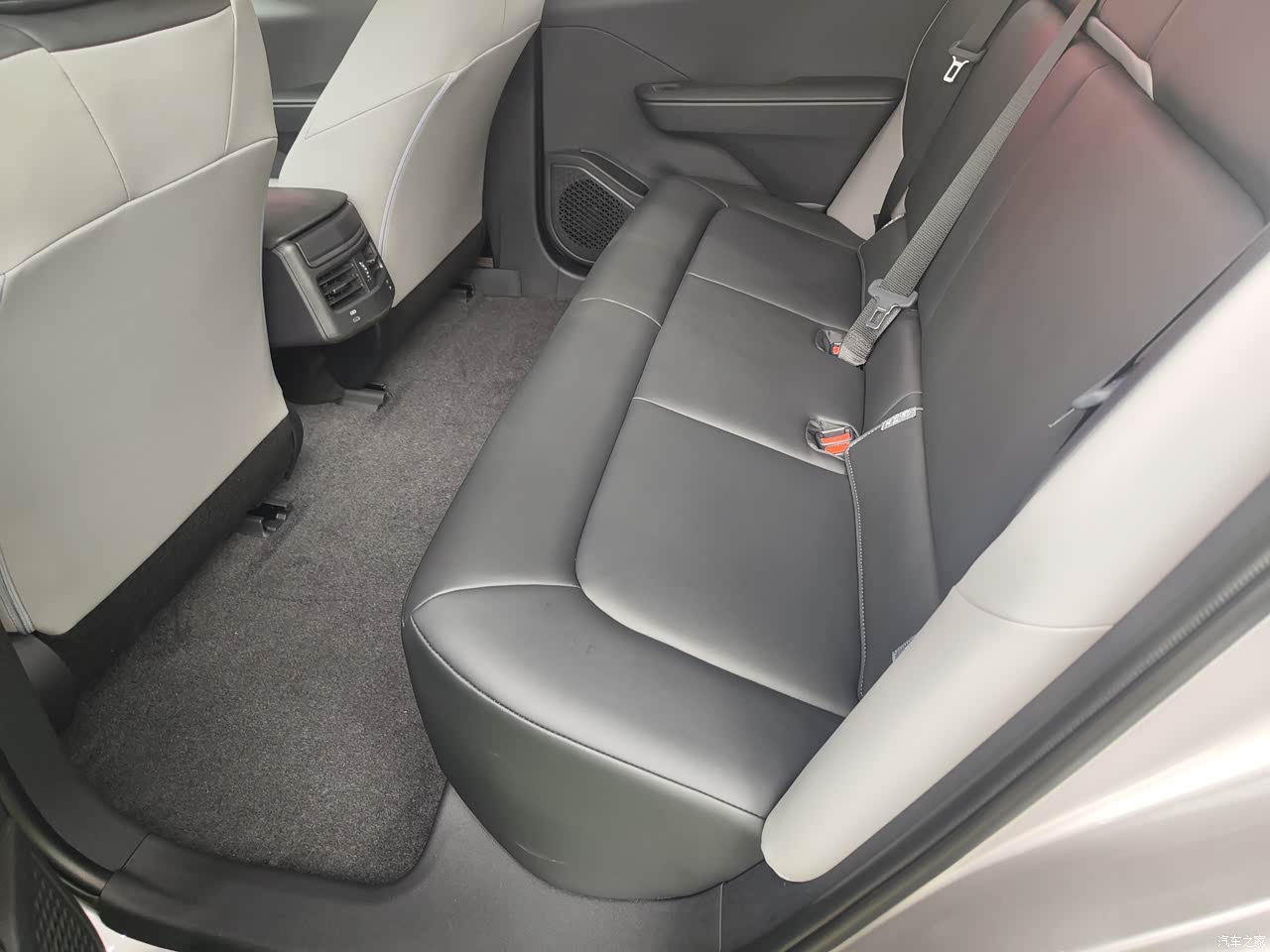 车子长度是4.7米,前排坐着还是挺宽敞的,后排有点窄,腿不能舒展开,只能贴着座椅收着,值得一提的是中间没有横梁,二排中间那个人坐着不会那么难受