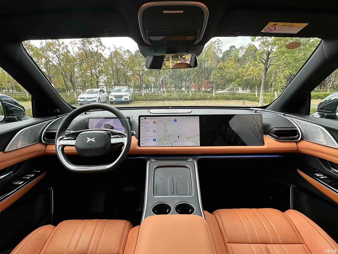 棕色座椅豪华感十足,真皮方向盘手感丰富,21个喇叭音质极好,内饰材质柔和细腻。