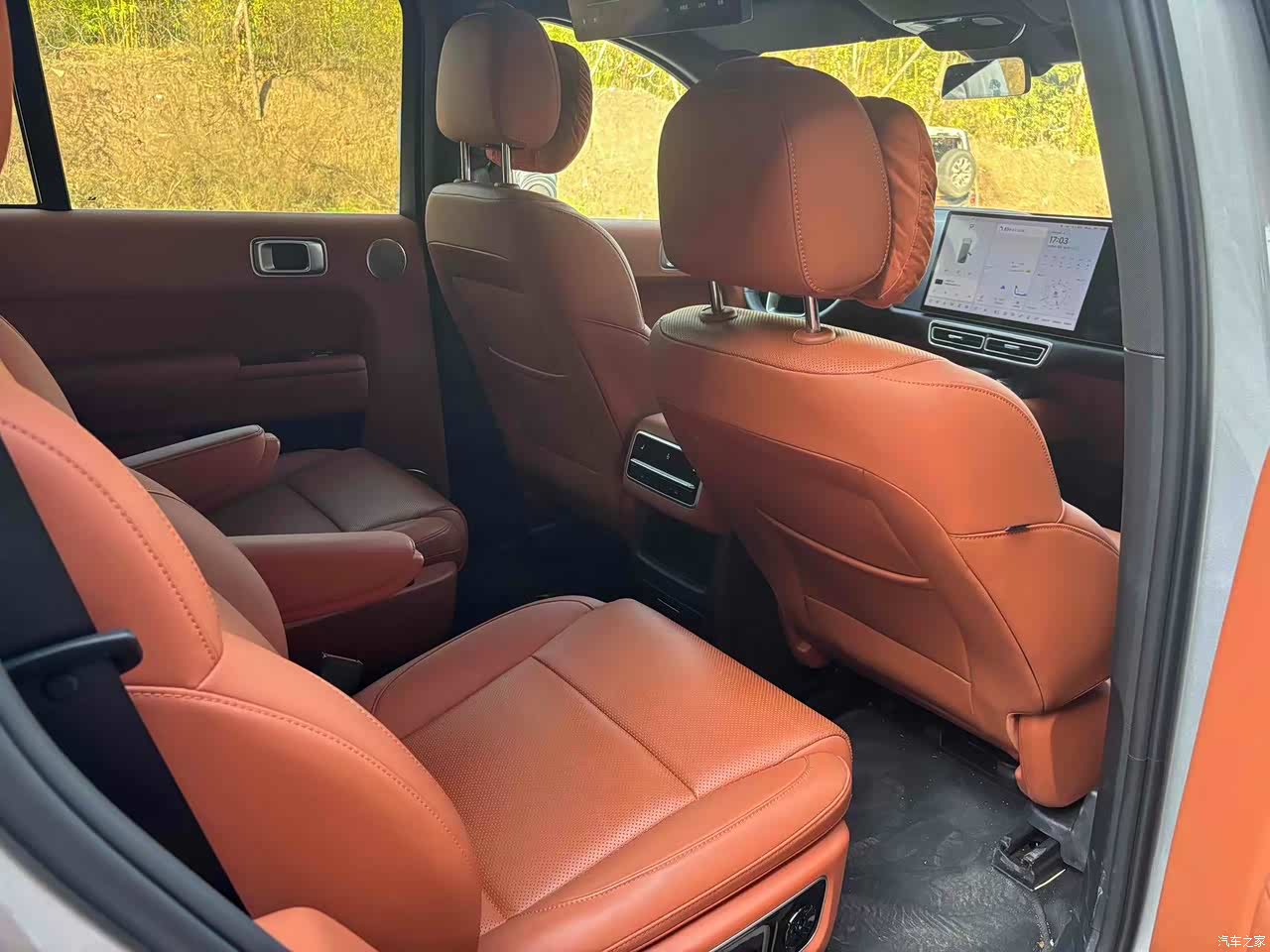 内饰爱马仕橙非常漂亮。双屏设计很好,家人朋友看电影一点不影响我的驾驶。 座椅皮质质感非常好。主驾的腰托好用,长时间行驶不会感觉腰酸背痛,不用再像以前那样放个靠背来支撑。