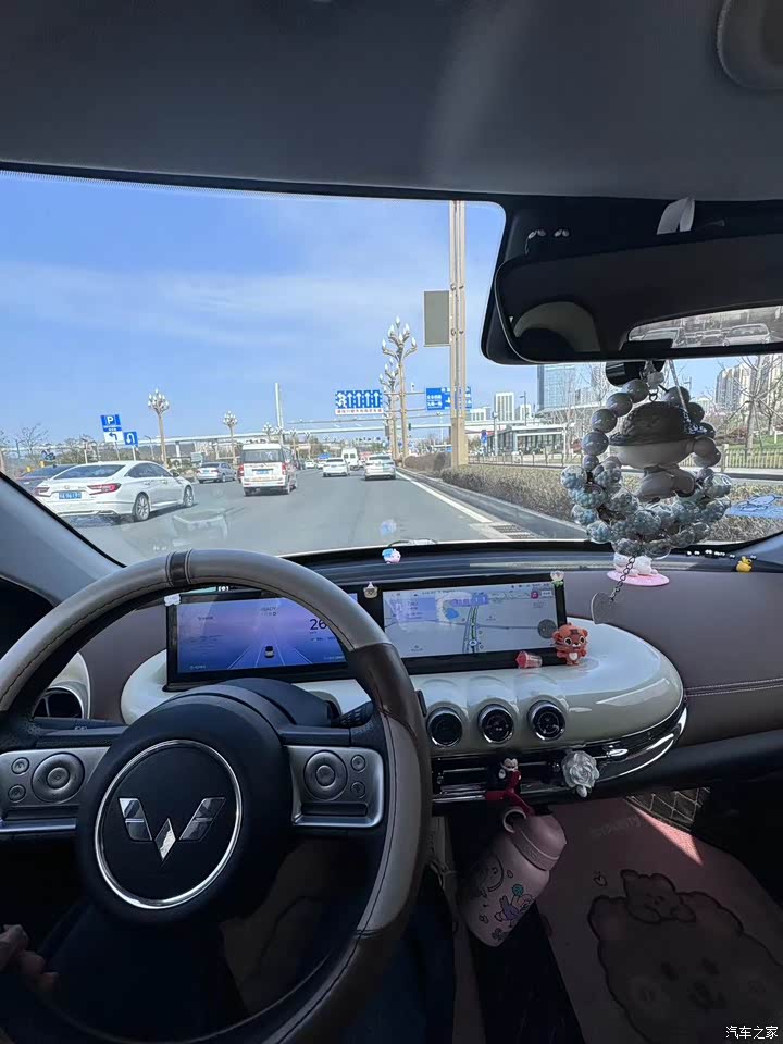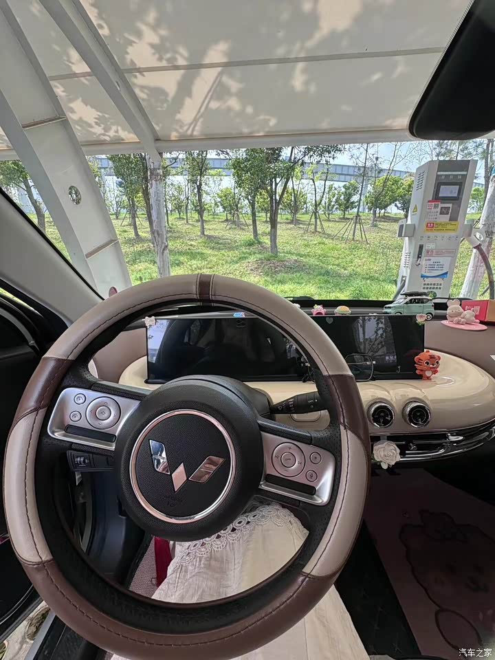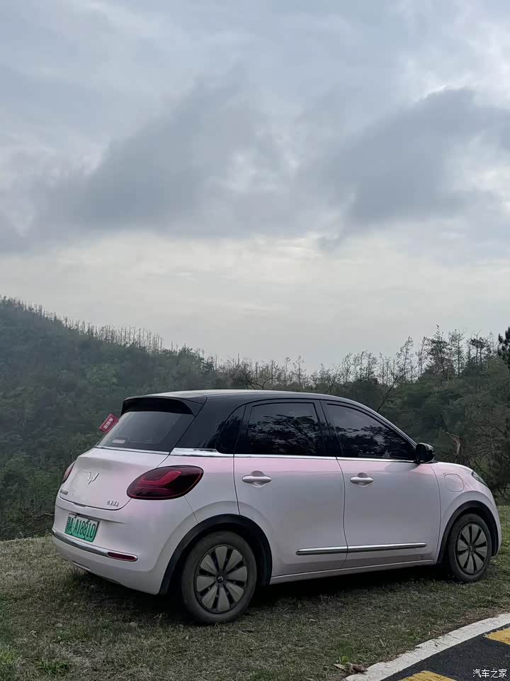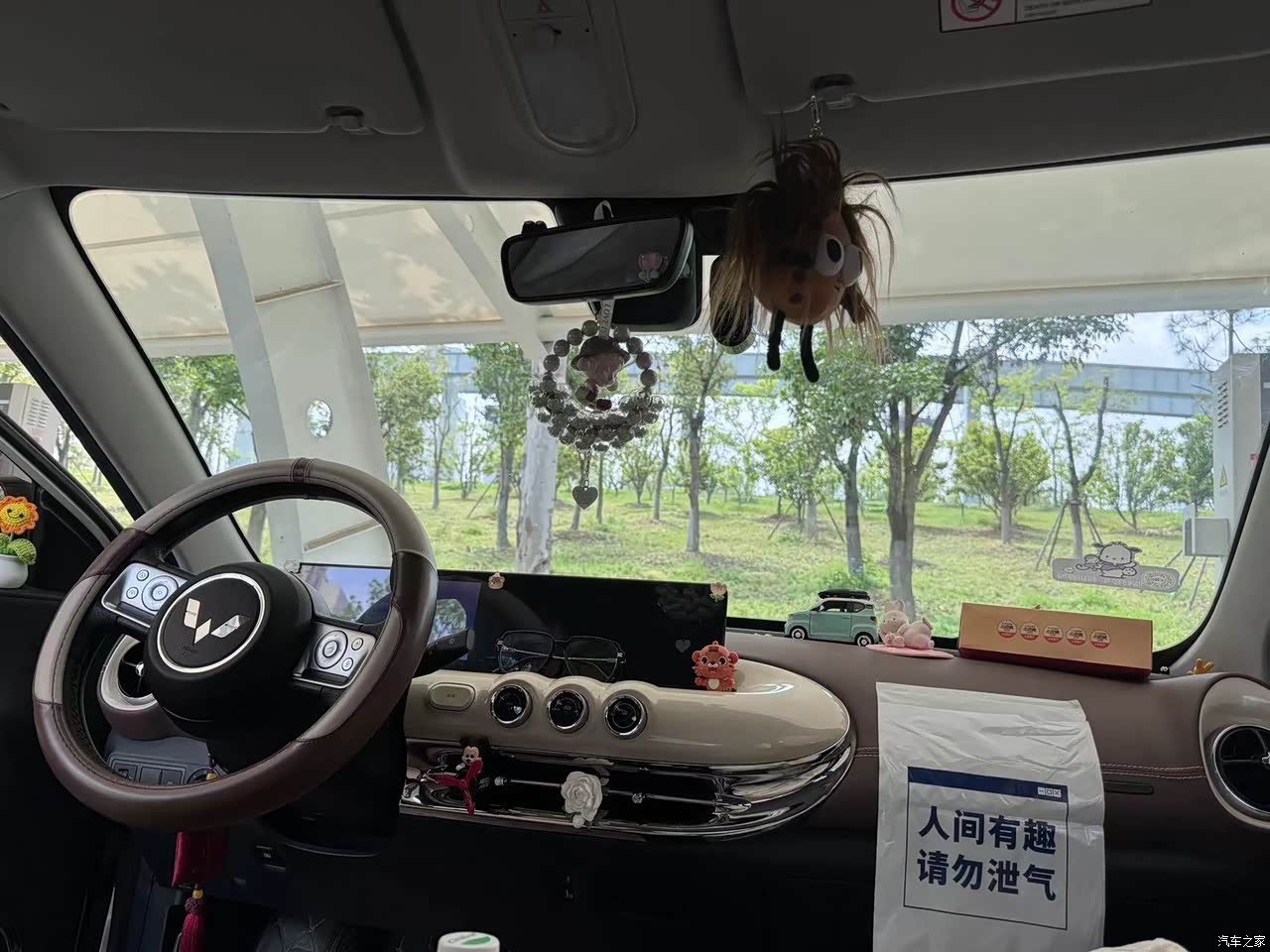 缤果的外观圆润可爱 女生真的是一眼就心动 内饰比较偏复古的感觉 我买的是奶咖白 然后黑顶还有就是买车没多久出了新版本盲定送的哦)后来贴了一个花悦粉的车膜 真的很好看 有太阳简直是闪闪发光 一整个爱住了