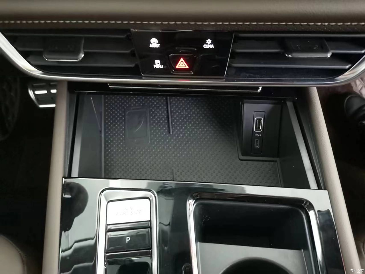 内饰方面不过于评判,能正常方便实用没问题。中控台皮质包裹,还有木纹饰板都显的很高档的感觉。中央扶手箱,很大很能装,有两种充电插口,很实用。全景天窗也是最爱,尤其是老板爱抽烟,打开天窗啥味没有。