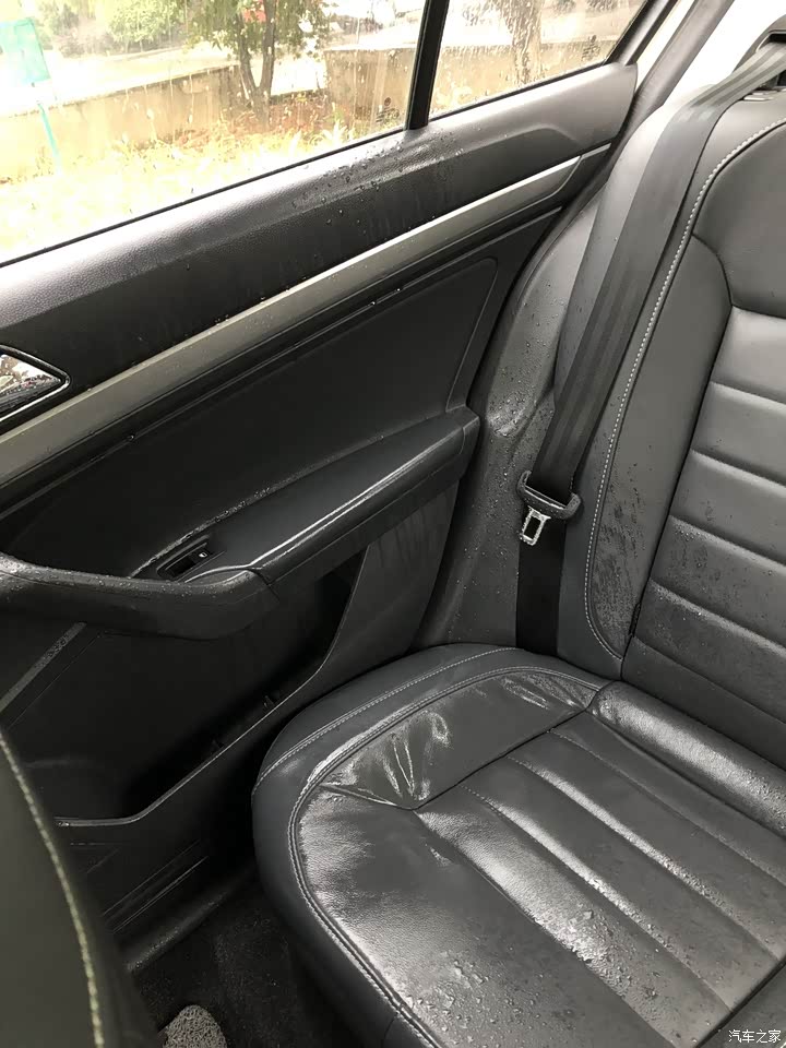 A级车空间没啥好提的,后排坐垫还短😅,附一张下雨忘记关窗的结果