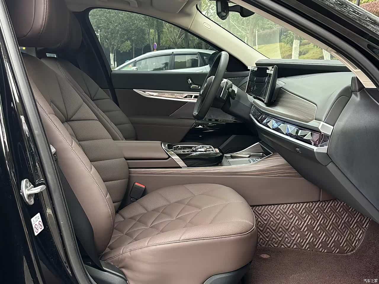 车头部分两个宽阔的进气格栅占据了显著位置,流露出强烈的力量感和现代感,给人以强烈的冲击,狭长的大灯可能会显得低调,仔细观察,它们所蕴含的平衡与活力却透露出一丝不拘一格的动感,为七系的灵魂注入了一股年轻的活力,略微下沉的底盘设计增添了几分优雅与稳重感,符合我审美观点。