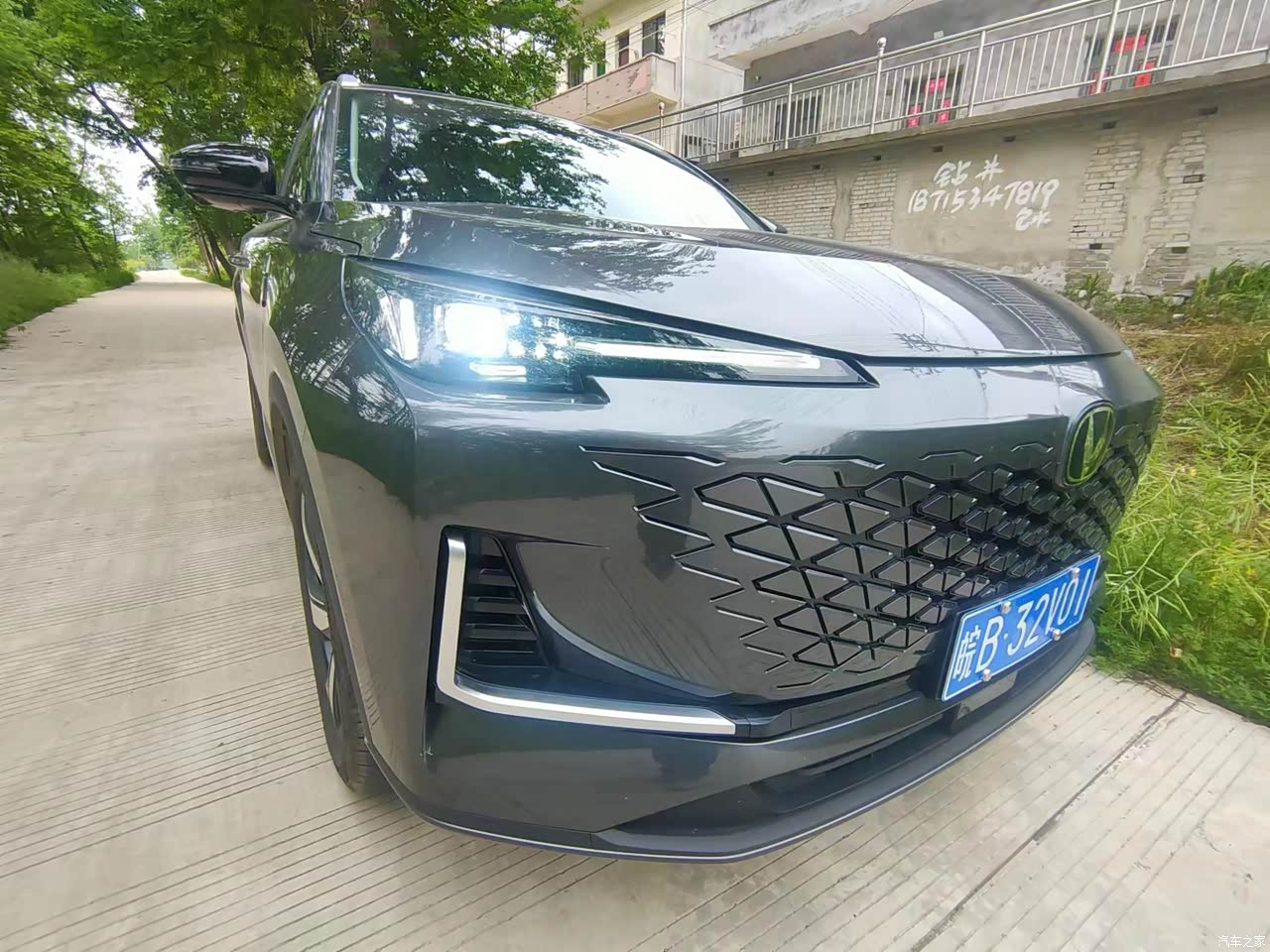 缘分这东西,说来就来。本来只是和老婆孩子随意在4S店看看,却没想到一眼就被第三代长安CS55plus的独特魅力所吸引。它的无边界车头设计、犀利的前大灯,充满肌肉感的车身线条,搭配神秘红的汽车座椅,显得科幻、现代、时尚、前卫。。。总之一眼爱上;再从销售介绍中了解到配置也很丰富,自动大灯、L2自动驾驶、感应雨刷、座椅加热、电动后尾门等等,都是我比较喜欢的配置,最让我满意的是动力,早就听说长安蓝鲸发动机厉害,我在试驾中一路地板油,动力随叫随到,果断选择订车。