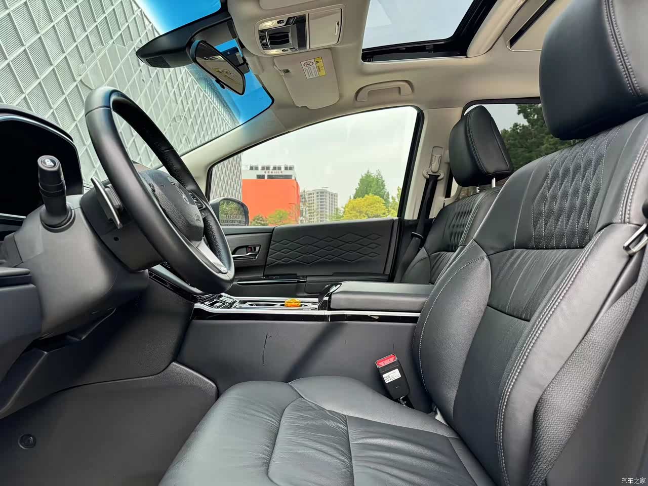 最满意的就是空间随着家庭成员的增加以及工作的需要所以继续购买一辆MPV,最满意的就是它的空间,车长4951mm,轴距2900mm,这样的数据在同级别MPV车型中也是可圈可点的,车内横向纵向空间很大,七座座椅布局空间都很宽敞,一家七口随时来一场想走就走的旅行,座椅的填充物所以包裹性支撑性都很强,就算长时间行驶也不会感觉疲惫,我185厘米体重175斤,是个大胖子了,在驾驶位头部和车顶还有一拳距离没有压抑感,座椅坐姿很高驾驶视野很开阔没有盲区有一种上帝视角可以俯视一切还有4向调节功能,第二排独立座椅有靠背调节脚托调节肩部调节,我的家人和商业伙伴就喜欢在第二排座椅半躺着小酣一会,并且还有加热功能,冬天坐上去感觉浑身都是暖洋洋的,第三排座椅和第二排中间还有很大的距离,腿部空间还是很富裕,座椅舒适度很高,即使在满座的情况下也不会有拥挤感压抑感,第三排可以放倒增加了后备箱的容积,这样自驾游或者出差就可以放置很多的行李,车内储物空间布局合理,孩子的玩具,老婆的手包化妆盒都可以归置好。其次就是驾驶感受,它搭载了一台2.0L自然吸气的发动机,最大有146匹的马力,因为是油电混合所以起步是非常的安静平顺,加上E-CVT变速箱的加持急加速动力强劲没有顿挫感,一脚地板油也能体会推背感的刺激,超车也是异常轻松,只要给油动力就会源源不断的提供给我,车身还很稳定,过弯并线随车性很好,底盘调教扎实,高速过弯车身倾斜抑制性很好,轮胎抓地力也是很强刹车制动灵敏,方向盘指向很精准没有虚位,操控很轻盈,是一辆不可多得的好车。