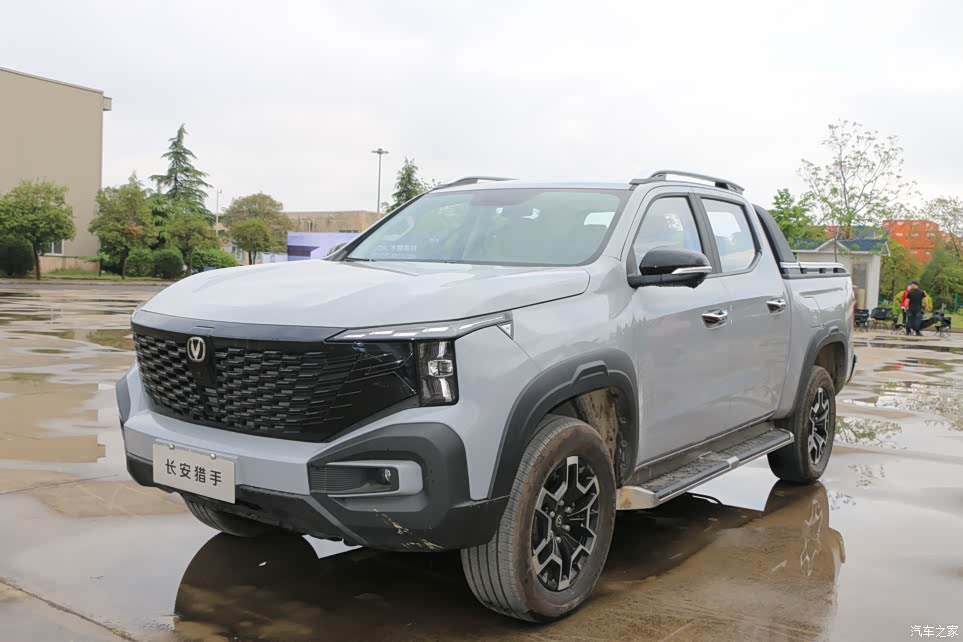 长安猎手是长安旗下首款搭载增城动力的皮卡车型,整个前脸外观很有战斗运动气息,造型啊也显得更为精致,很家族化的一个设计风格,长安有不少车型都用的这个外观设计,确实挺好看的。包括它两边的日间行车灯的点缀啊,远远看过去,就知道长安猎手来了,再比如你看那前脸,很有攻击性,像鲨鱼大嘴一样,不失稳健又大气,给人一种力量速度感,据说这种灵感设计来源于自然界中猎食者发起攻击时的瞬间捕捉,让我感觉啊这几年长安的设计师是在线的。