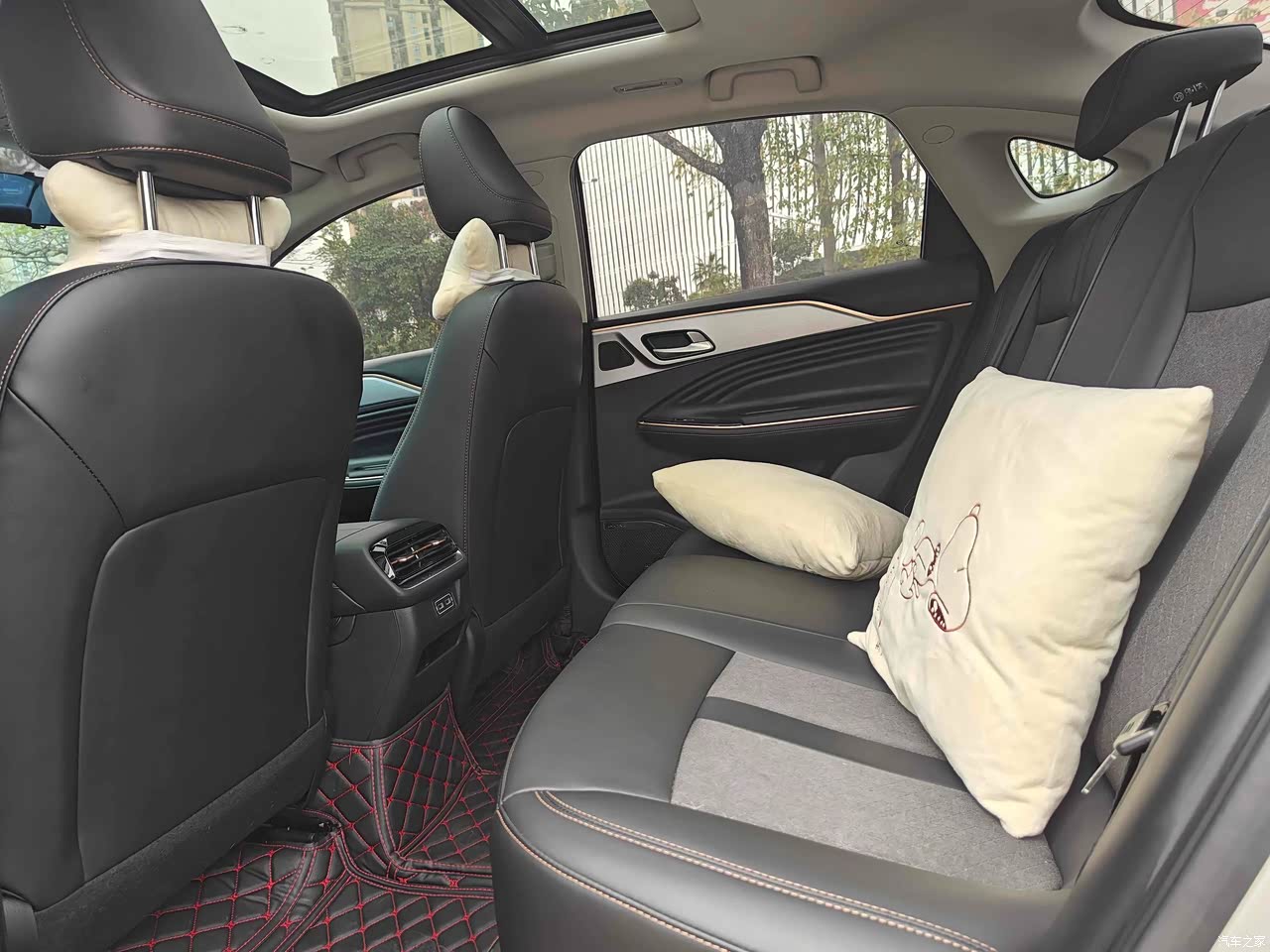 空间还行吧,同级正常水平,也没有多大,毕竟是个A级车,但绝对够用,我一米七三,坐到后排腿部空间还有接近2拳。车里的储物空间也很优秀,门板上的储物格能放3瓶矿泉水,中控也是镂空的设计,也能放不少东西。后备箱空间在电车中算比较大的,放3个行李箱没有问题。