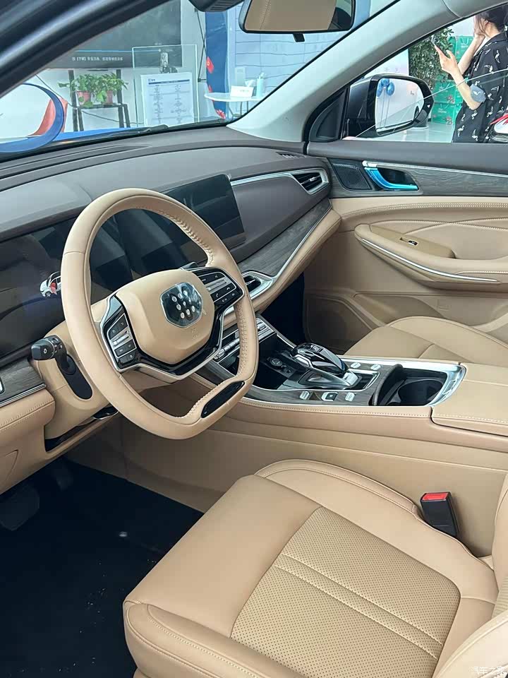 在外形和空间上面还是挺让我满意的,中型插混SUV,空间很大可以随意切换5座和7座,外形也挺时尚。车里面配的是7.3英寸和一个12.3英寸的大屏,车机是华为智能生态系统可以一键连接手机,自带导航,最重要的就是有360全景影像,行驶过程中靠车太近,倒车都会提醒很方便的一个功能。