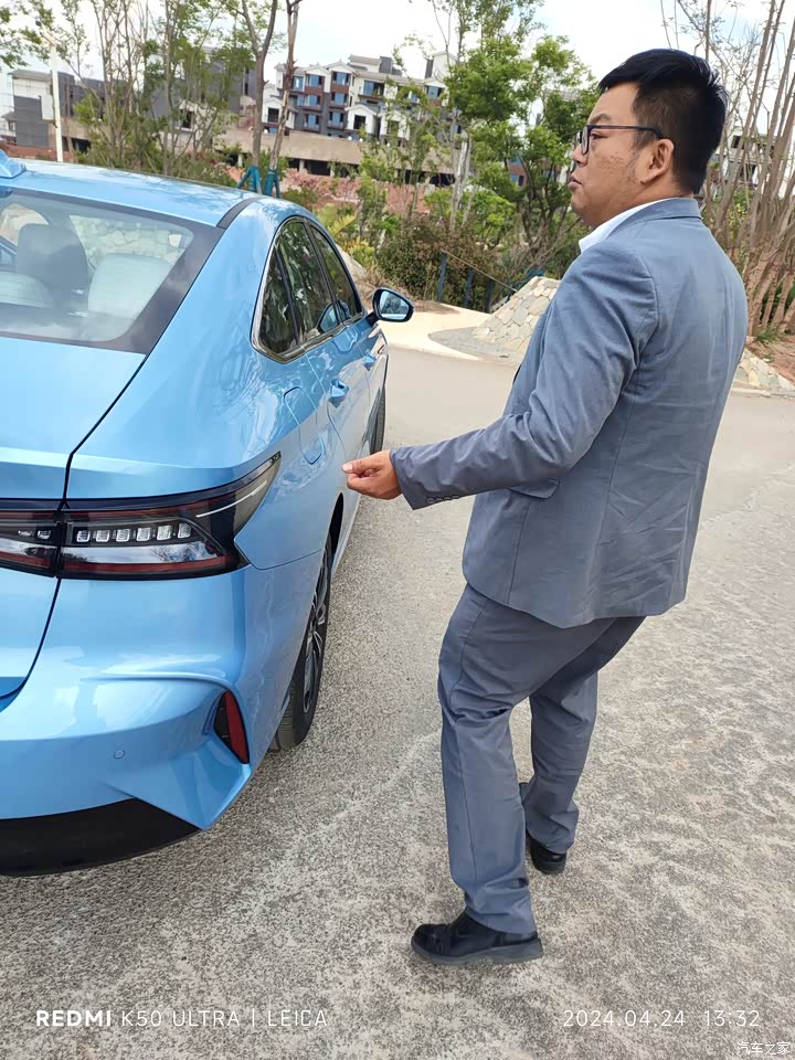 风云A8远航版前脸和风云8不一样,远航版前脸比较方正,加上底部黑色格栅,两侧黑色装饰,车头显得大气,侧身腰线很好看,车身冰川蓝确实很漂亮,但是这个颜色提车困难