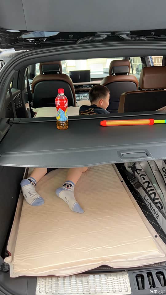 够用吧,娃喜欢躺着,放倒一边座位铺上充气床,爽歪歪