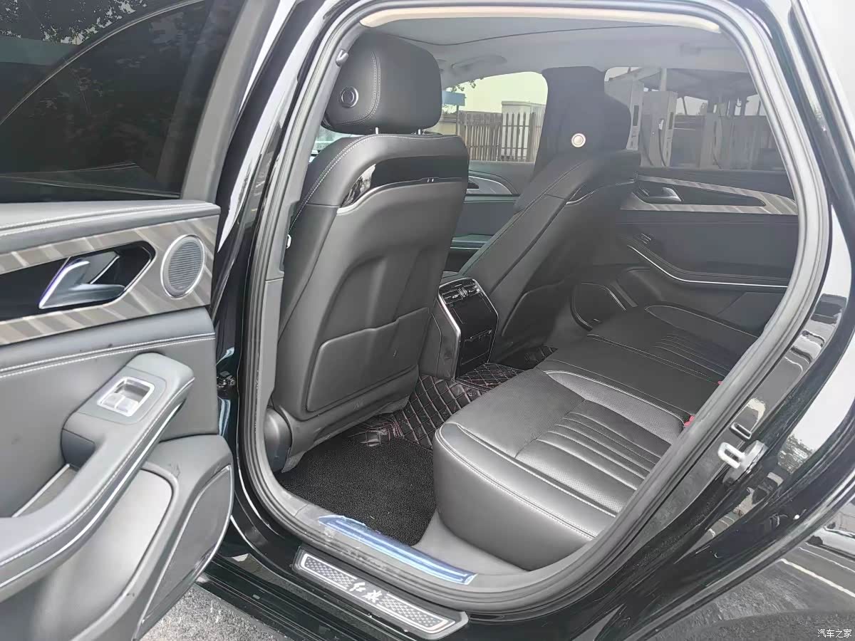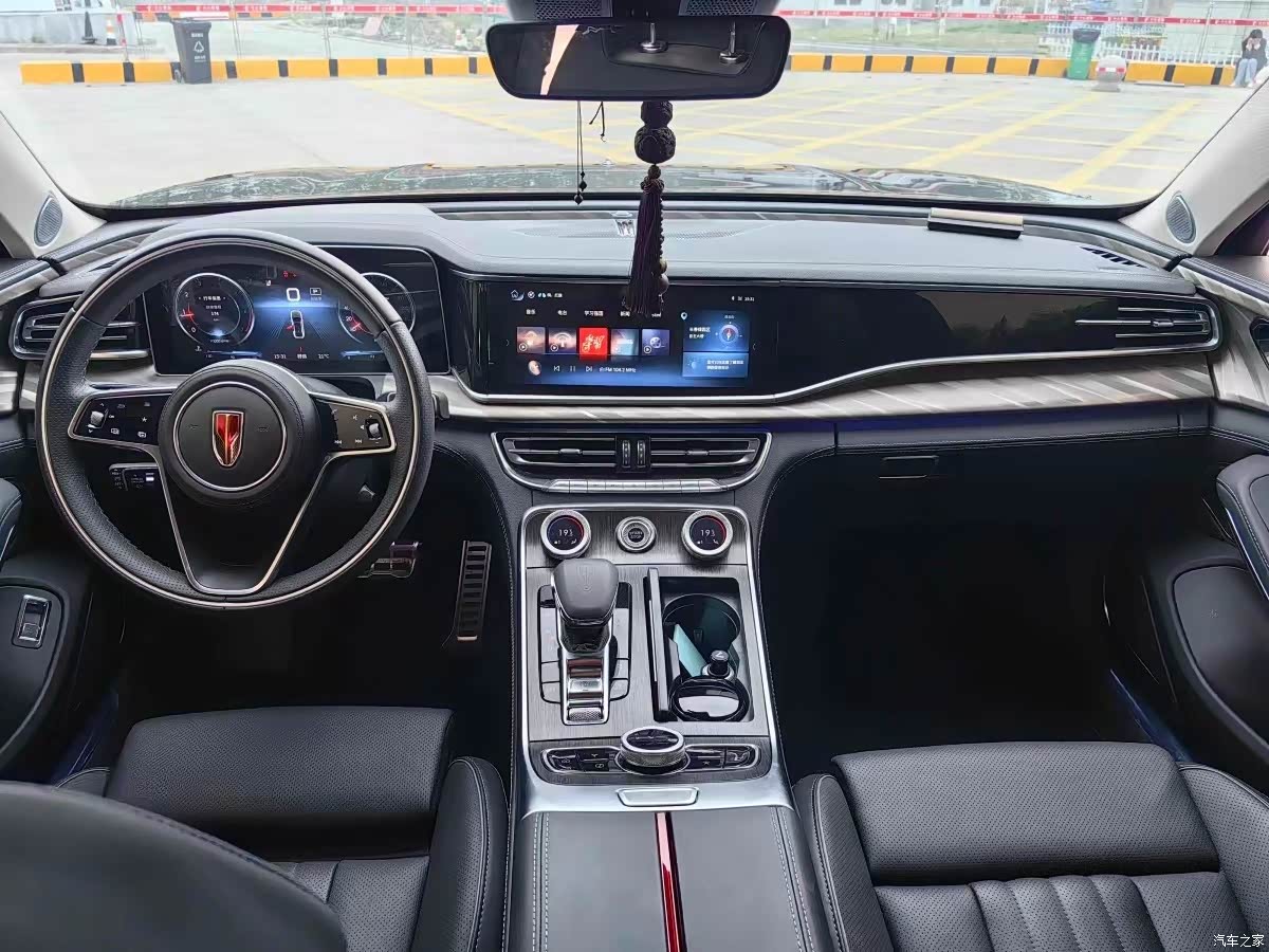 内饰还可以,在很有设计感的基础上还带来了很强的质感。中控台做了羽毛般的纹路造型板,屏幕虽然不是一整个中控台拉满,但是整体性比较强,做到了高级感和质感共生。座椅舒适度高,柔软度好。小细节体现在好几处的红色线条的装饰,点名了红旗的车标元素。