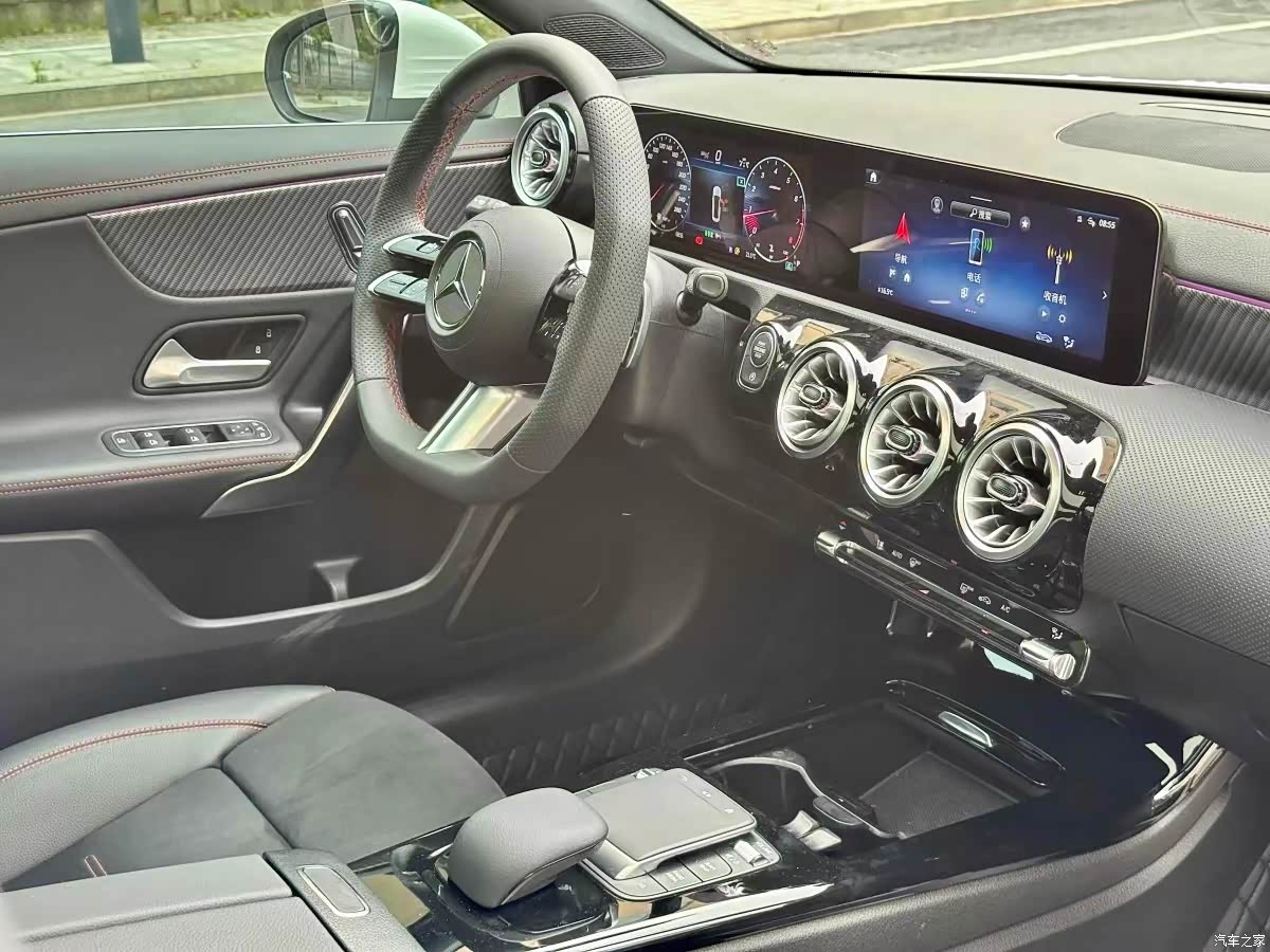 对于心中向往的奔驰A级轿车最满意的肯定是外观,车头前脸奔驰家族经典三叉星辉logo大气豪华,中网采用满天星的设计在行驶中就像一幅流动的星图,设计理念新颖独特让人眼前一亮,视觉冲击力爆棚,引擎盖处几条粗壮的线条彰显力量感,两侧大灯眼神犀利凶悍在夜间开启充满了压迫感,车身线条流畅自然而且还带有满满的运动气息,车尾圆润饱满非常性感,隐藏式排气管采用镀铬装饰显得与众不同,刚毅的大轮毂看着霸气十足,车子前脸大灯和车尾尾灯相互辉映,整车看着高档时尚又不失优雅知性气质还有青春靓丽风格,可刚可柔,在阳光下显的神采熠熠让我看了一眼就爱不释手,其次就是内饰了,车内内饰豪华感体现的淋漓尽致,材质用料基本都是软包,所以手感很好摸着非常柔和细腻,座椅很软填充物非常的足,就像一个移动的大沙发,包裹性和支撑性都很好,炮筒式空调出风口设计也是别具一格,10.25英寸中控屏非常具有科技感,造型不仅前卫而且实用性很强。